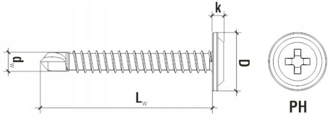 Головка шайби забезпечує відповідний тиск на закріплений елемент. Найпоширеніша розетка PH полегшує встановлення.
