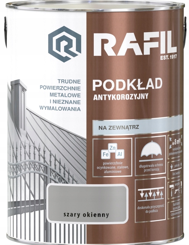 Використовується грунтувальна фарба Rafil ANTI-CORROSION PRIMER на оцинкованих, сталевих і алюмінієвих поверхнях зовні. Необхідний для складних поверхонь або поверхонь, пофарбованих невідомою фарбою. Створює матове, еластичне покриття. Характеризується відмінною адгезією до основи, а в комплекті з фінішним покриттям Rafil RADACH, Rafil EKO RADACH або Rafil DO GATES AND FENCES забезпечує тривалий антикорозійний захист.