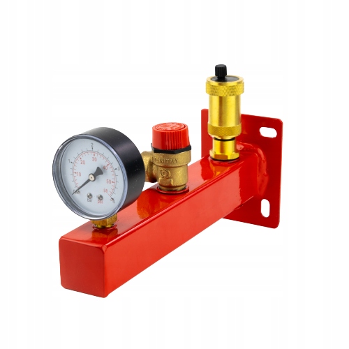 Високоякісні групи безпеки для захисту опалювальних установок від надмірного підвищення тиску, вимірювання тиску та вентиляції установки. Виготовлений зі сталевої балки з порошковим покриттям з різьбленням для розширювального бака. Оснащений запобіжним клапаном з латуні, автоматичним повітровідвідником з хромованої латуні та манометром. Групи безпеки характеризуються якісним виконанням і незмінним маркуванням на корпусах відповідно до європейських стандартів.