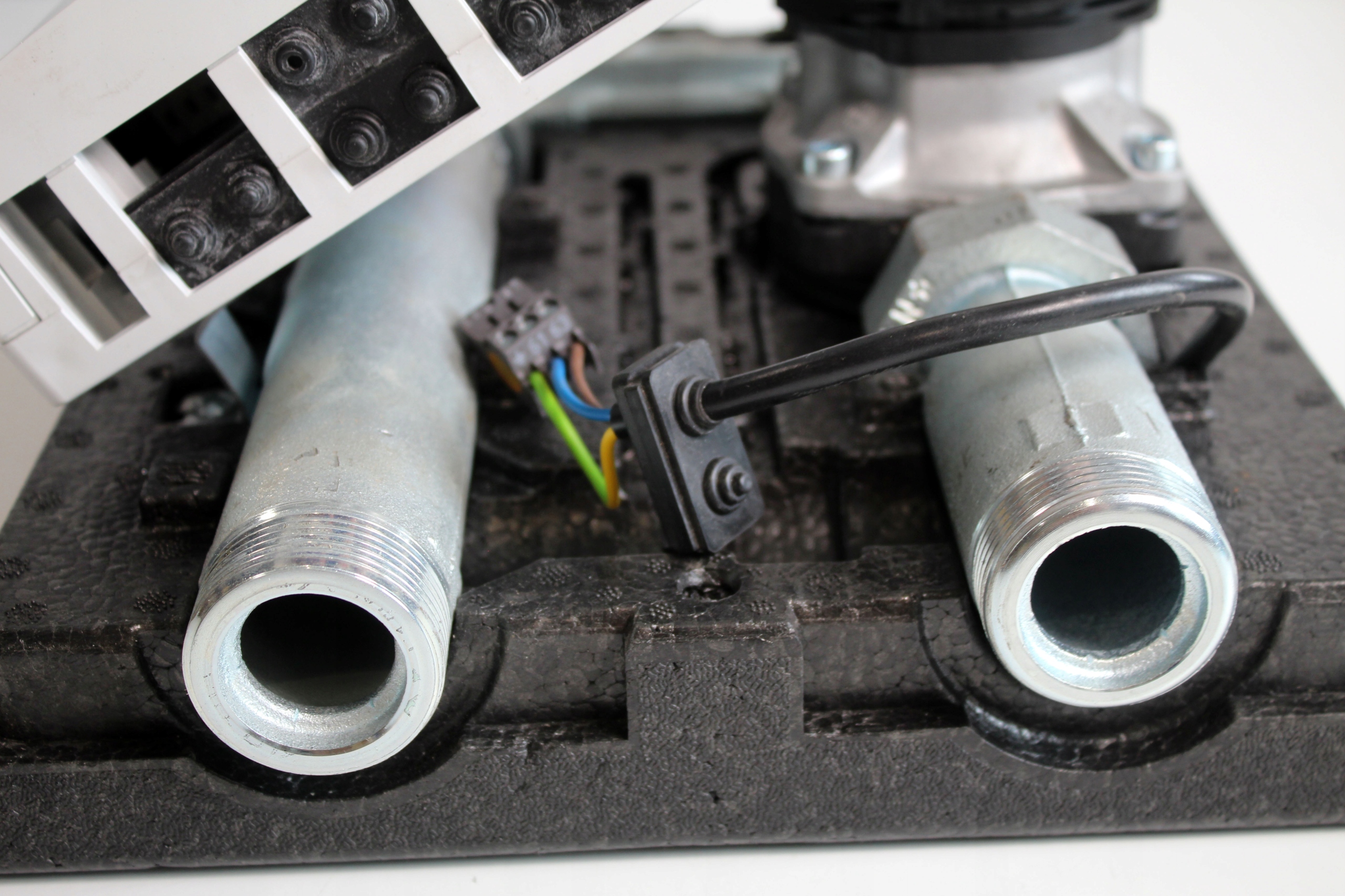 Сучасна група насосів, призначена для нагрівальних установ, оснащена енергетичним циркуляційним насосом, закритими клапанами, подачі та поверненням термометрів та тривожним змішувальним клапаном з циліндром. Весь був укладений в естетичний корпус, виготовлений з довговічної піни EPP, забезпечуючи адекватну теплоізоляцію.