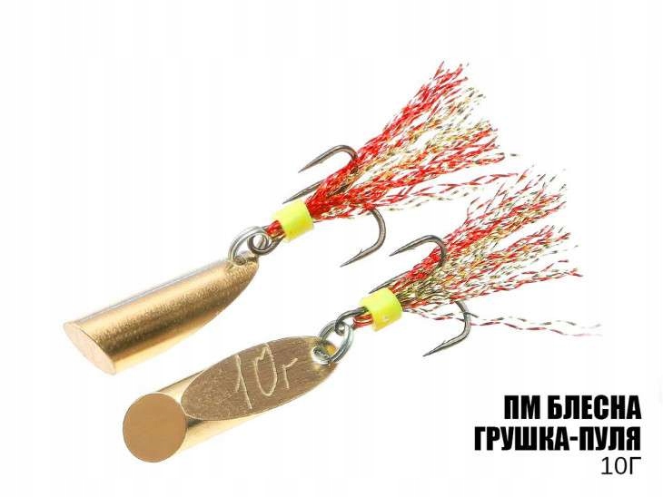Shiny Pear-Bullet 10g - дуже популярна і уловиста приманка. Тут можна зловити як звичайних хижаків: судака, щуку, окуня, сома, жереха, так і мирну рибу: коропа, карася, ляща та ін. Груша-куля добре працює в будь-який час року, так як підходить не тільки для полювання у відкритих водоймах, але і взимку, демонструючи спокусливу гру на льоду з вертикальною анімацією. Щоб уникнути заплутування та отримати повний потенціал наживки, кулькову грушу слід кріпити гачком у діагональному положенні на блешні. Приманка виготовлена з латуні і оснащена високоякісним трійником з люрексовою кромкою для додання кожній приманці об'єму, люрекс додатково розпушується вручну.