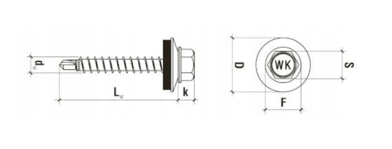 - Діаметр головки гвинта Dw [мм]: 10