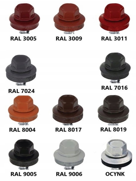 Гвинти самонарізні з EPDM-шайбою, оцинковані, для кріплення листового металу, черепиці та листового металу до дерев’яної основи. Шурупи фермерські пофарбовані відповідно до: Кольорові палітри RAL
