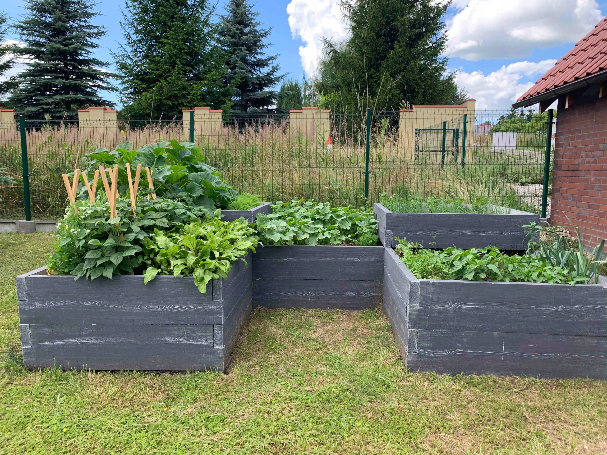 Можна пофарбувати овочевий сад будь -яким кольором з палітру, щоб ящики вписалися в естетику саду - для узгодження.