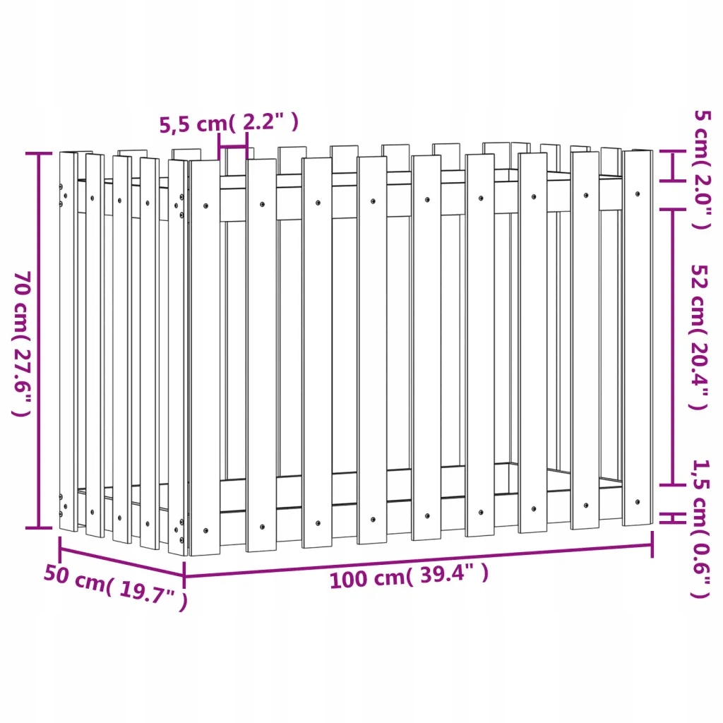 Садовий бордюр з парканом, 100x50x70 см, сосна просочена