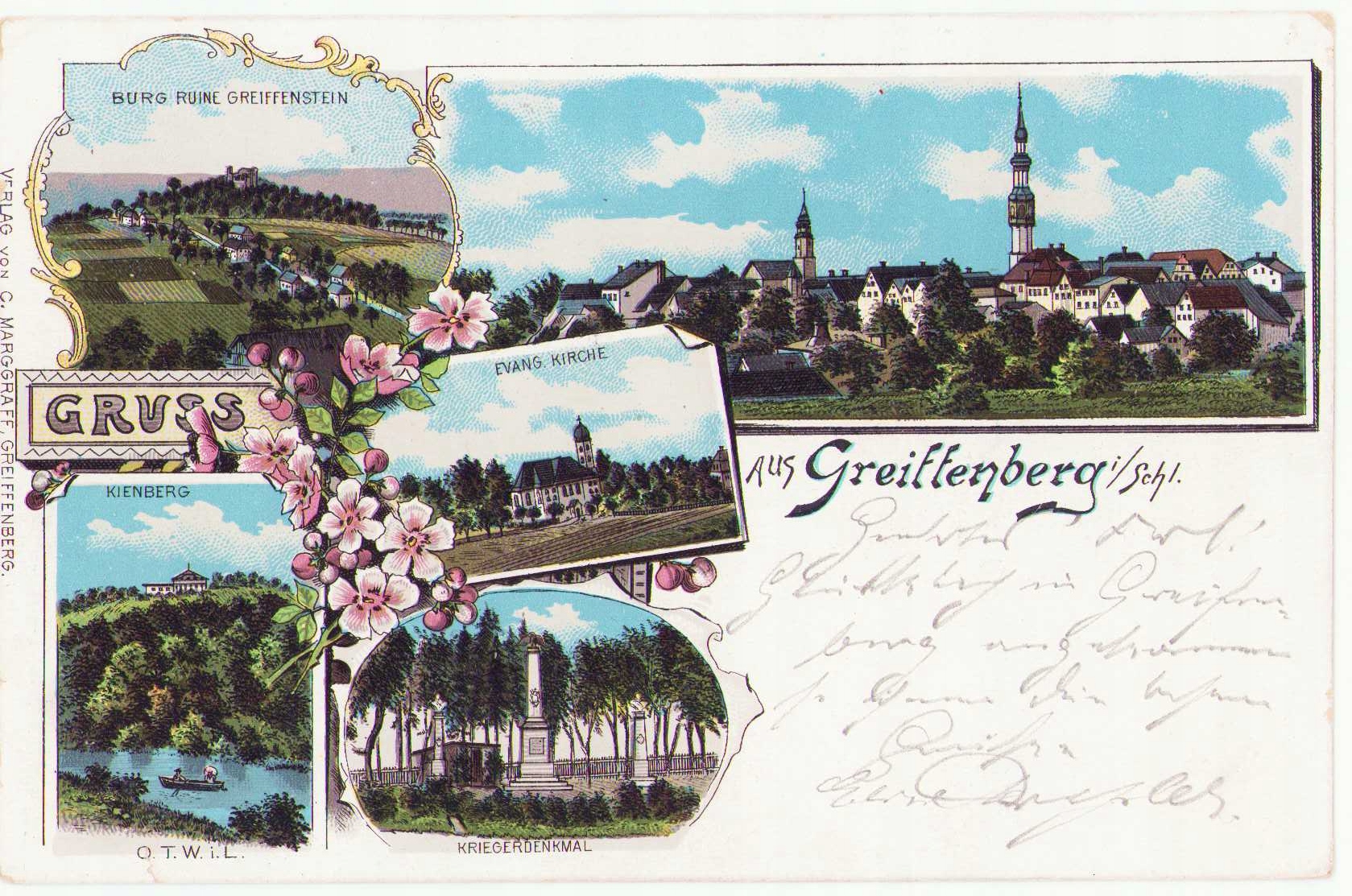 GRYFÓW ŚLĄSKI- GRUSS AUS GREIFFENBERG -1903 LITOGRAFIA STAN!