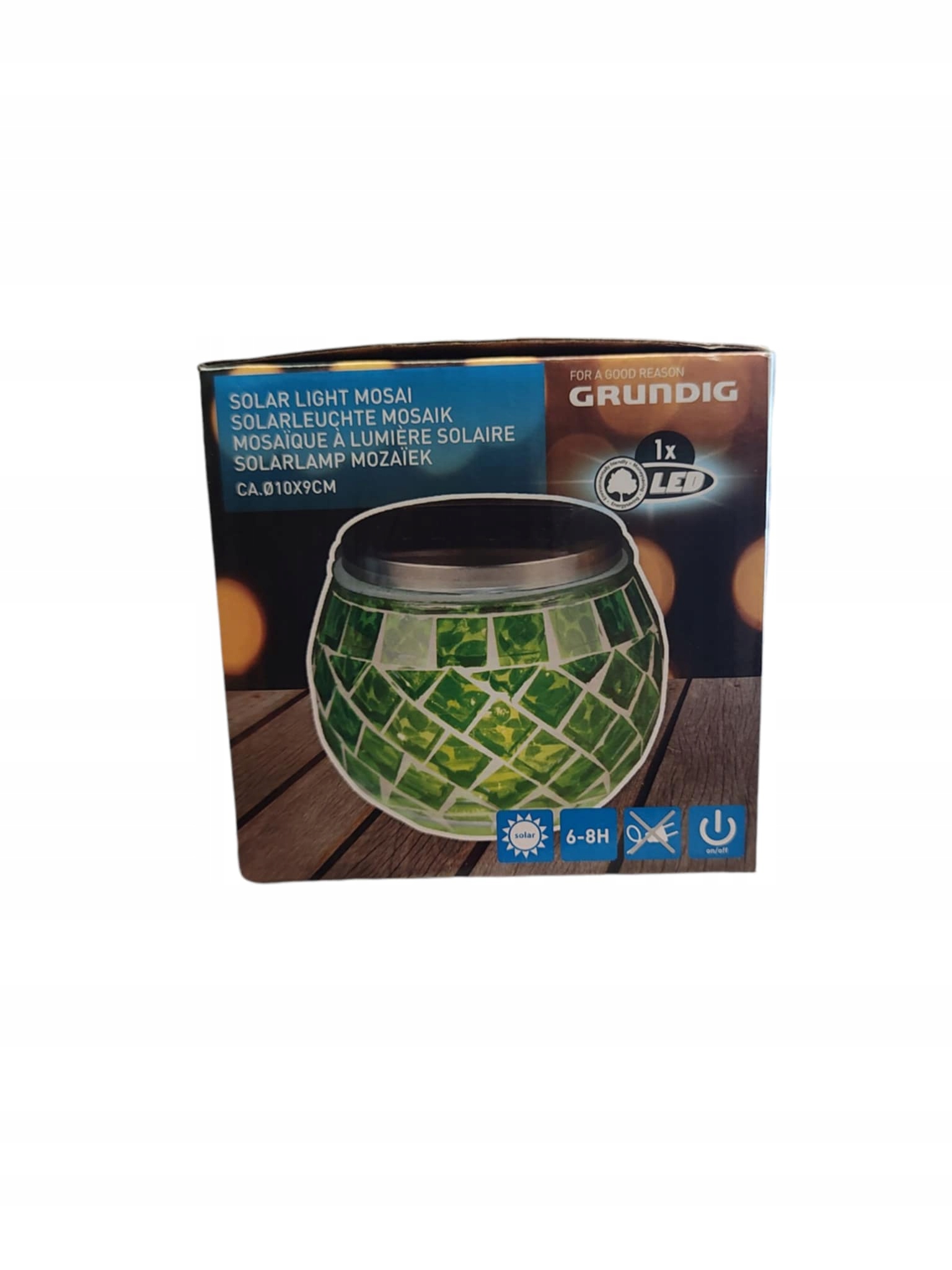 Грюндіг прикраси з унікальним, мозаїчним зовнішнім виглядом, що працює на сонячній енергії. Це чудово виглядає на терасі та на балконі. Це інвестиція в один раз, оскільки вона використовує лише сонячну енергію для освітлення. Його можна використовувати як джерело світла без необхідності електричної установки.