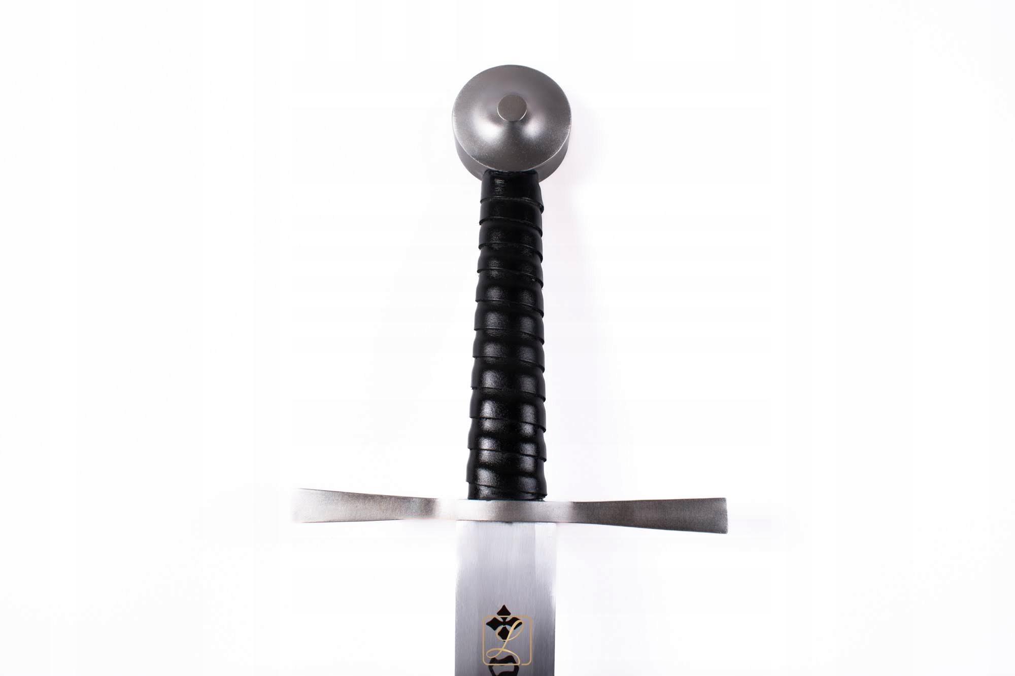 Одноручний лицарський меч із Грюнвальдської битви. Клинок, хрестовина та навершя виготовлені зі сталі, відшліфовані та відполіровані для отримання матової поверхні. Підкладка ручок обтягнута натуральною шкірою. На лезі є напис: GRUNWALD 1410