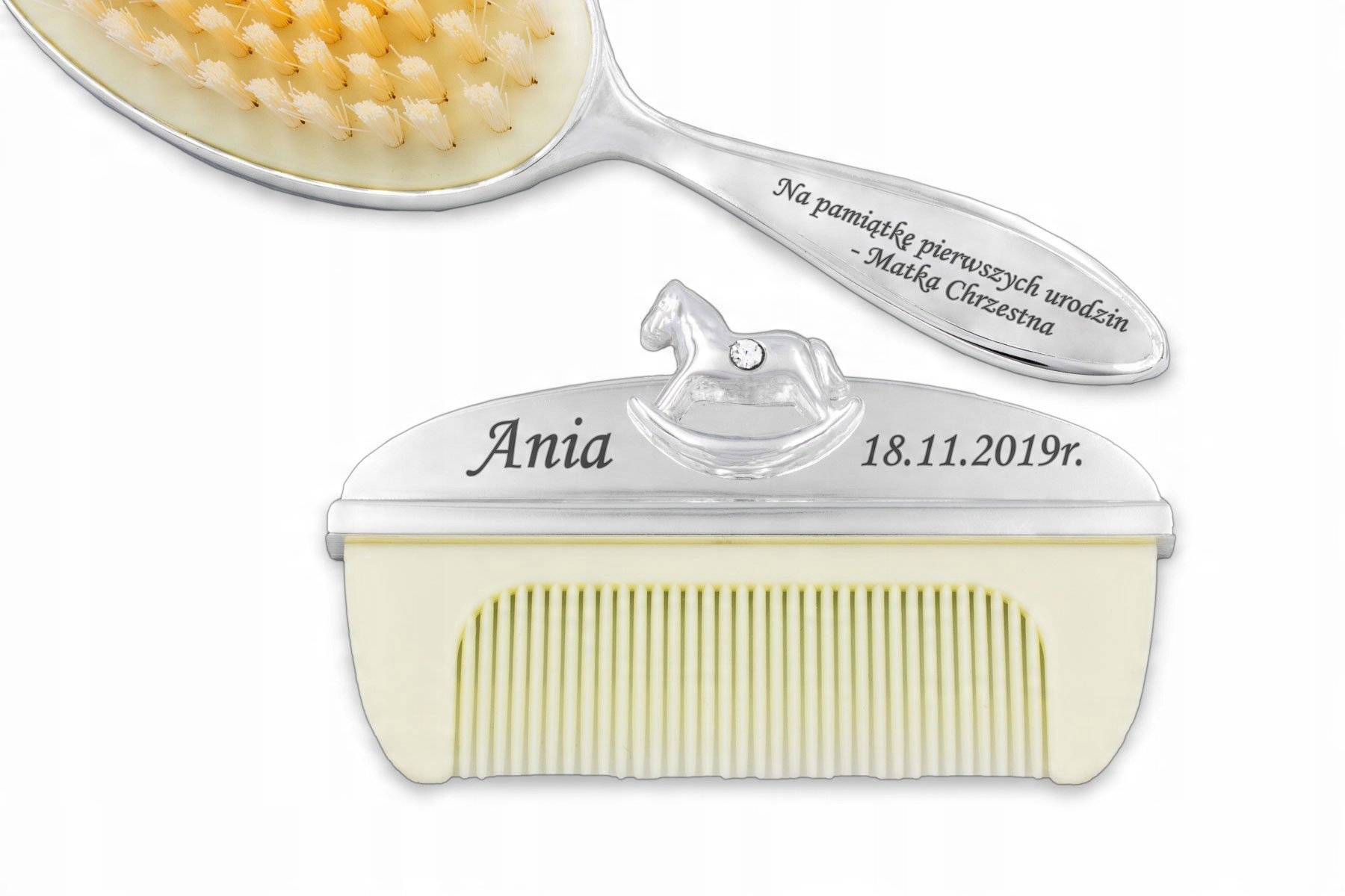 Grzebyk i Szczotka GRAWER Pamiątka Chrzest Roczek