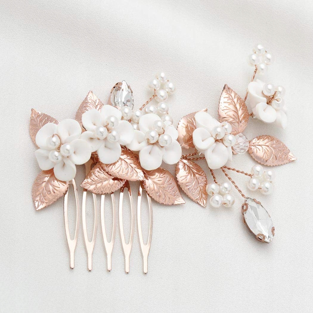 GRZEBYK ŚLUB OZDOBA DO WŁOSÓW KWIATY PERŁY KRYSZTAŁKI STROIK SPINKA MODNA