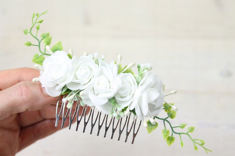 Grzebyk Różyczki do włosów stroik komunia BIAŁY