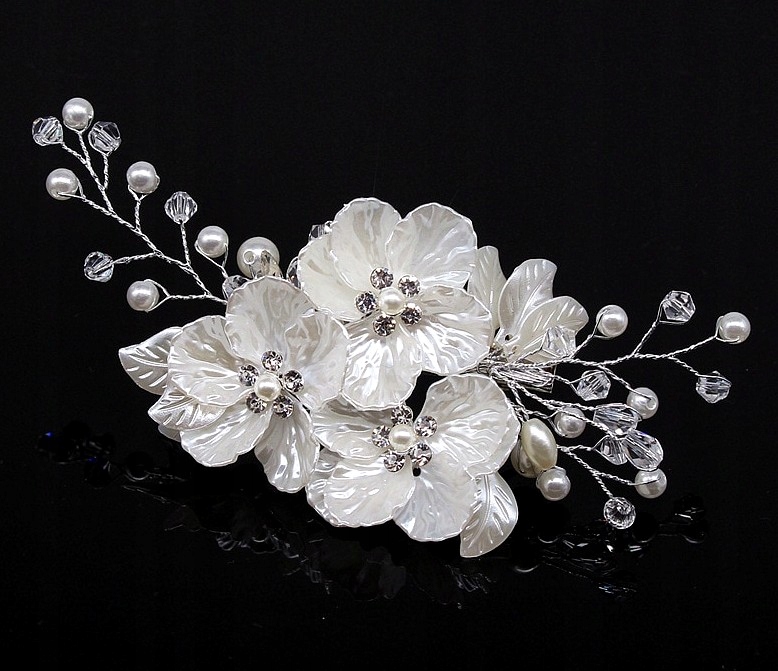 Grzebyk Срібна весільна прикраса для волосся квіти перли