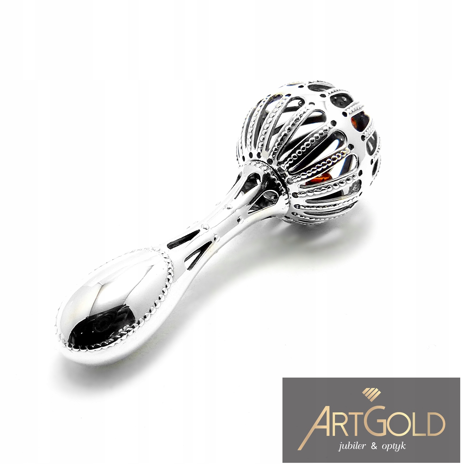 Grzechotka srebrna z bursztynem