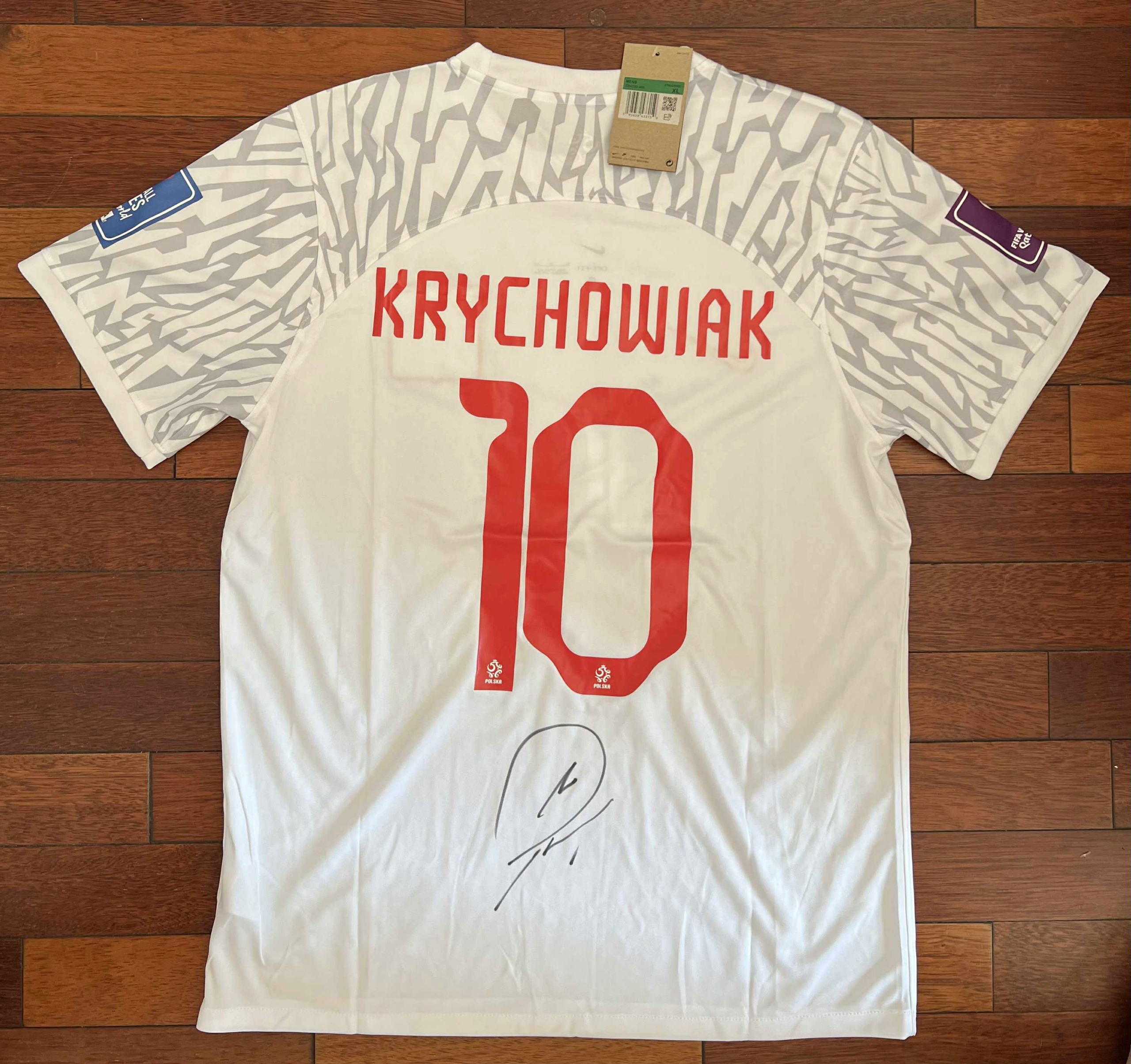t -сорочка з номером 10 національної збірної польської з автографом Grzegorz Krychowiak. Унікальна позиція для футбольних фанатів. Включає сертифікат автентичності у вигляді наклейки QR -коду, виданого авторитетною американською компанією.