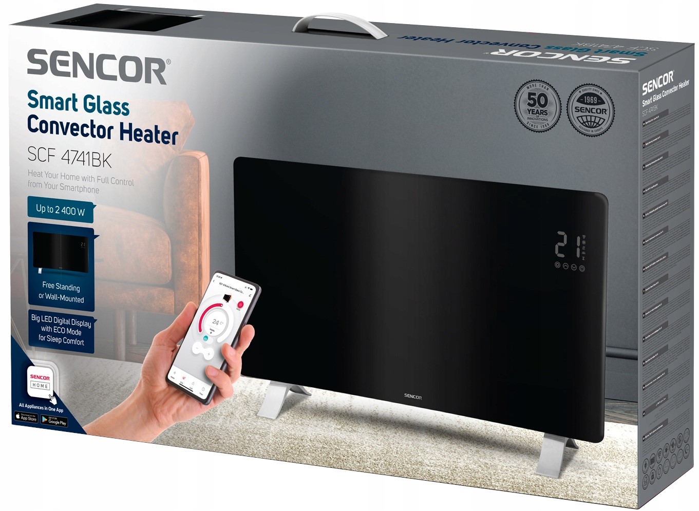 Представляємо вашій увазі скляний конвекторний обігрівач серії SCF 474x від Sencor, який легко забезпечить достатню кількість тепла в будь-якій кімнаті, в якій він розміщений. У гостьовій кімнаті ви оціните його елегантність і стильний дизайн із загнутими всередину пластинами з високоякісного загартованого скла, а в спальні ви оціните його компактні розміри та режим ECO, який не заважатиме вам під час сну. Радіатор також можна розмістити у ванній кімнаті - він ефективно захищений від води та вологи в повітрі - завдяки рівню захисту IP24.