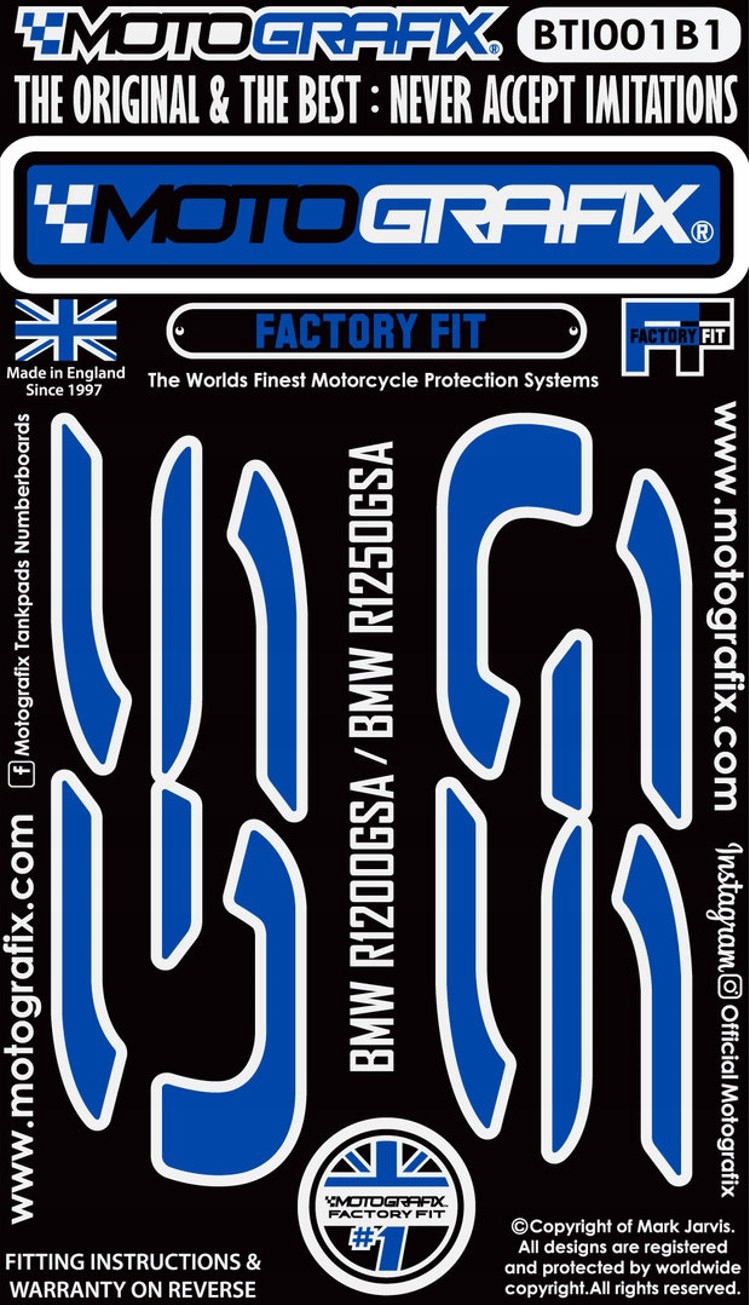 Виробник надає довічну гарантію через максимальну довіру до продукту, пропонуючи довічну гарантію на колір і адгезію. Висококласні накладки на бак від відомого англійського бренду Motografix доступні як універсальні накладки на бак, які підходять для більшості мотоциклів, і накладки на бак, призначені для даного бренду