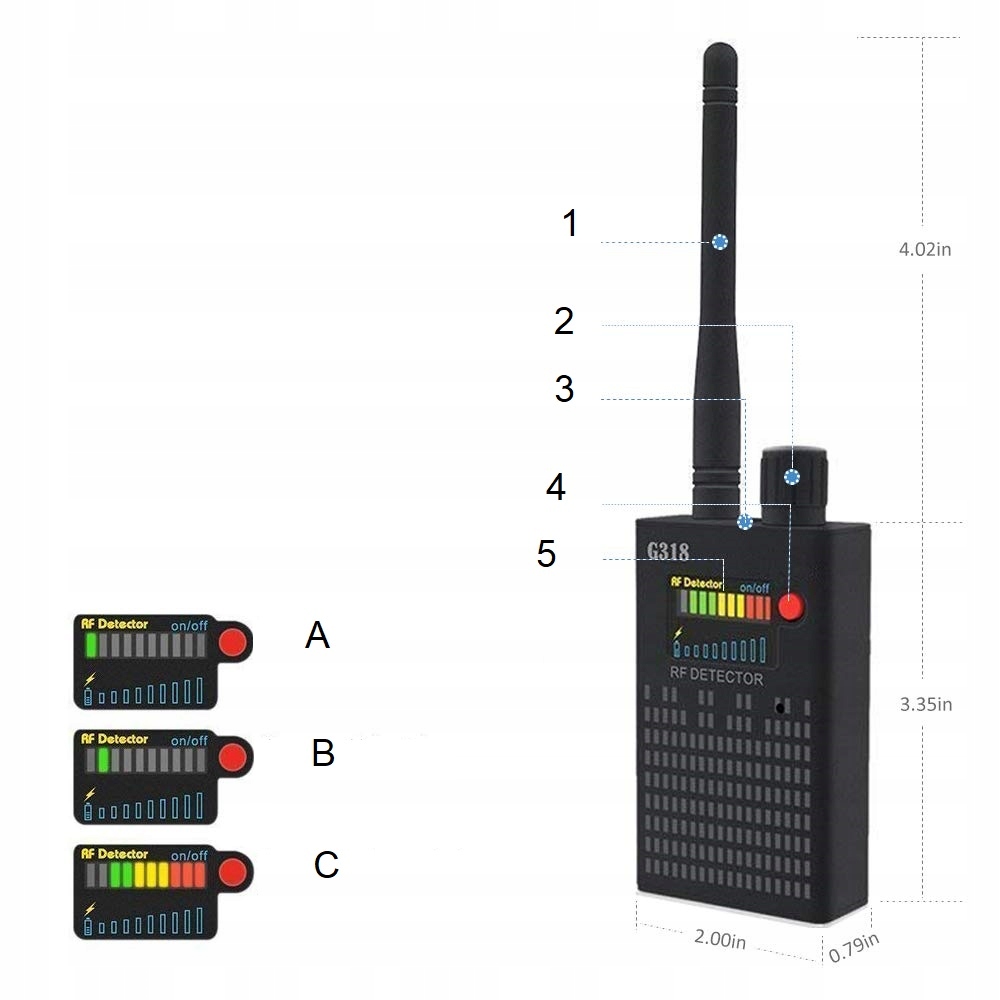 Детектор присвячений не лише професіоналам, а й людям, яким потрібно використовувати пристрій для виявлення систем спостереження. Пристрій дуже простий у використанні. Він має лише перемикач і ручку чутливості. Сигналізація для виявлення шпигунського обладнання - звуку та за допомогою світлодіодів на дисплеї.