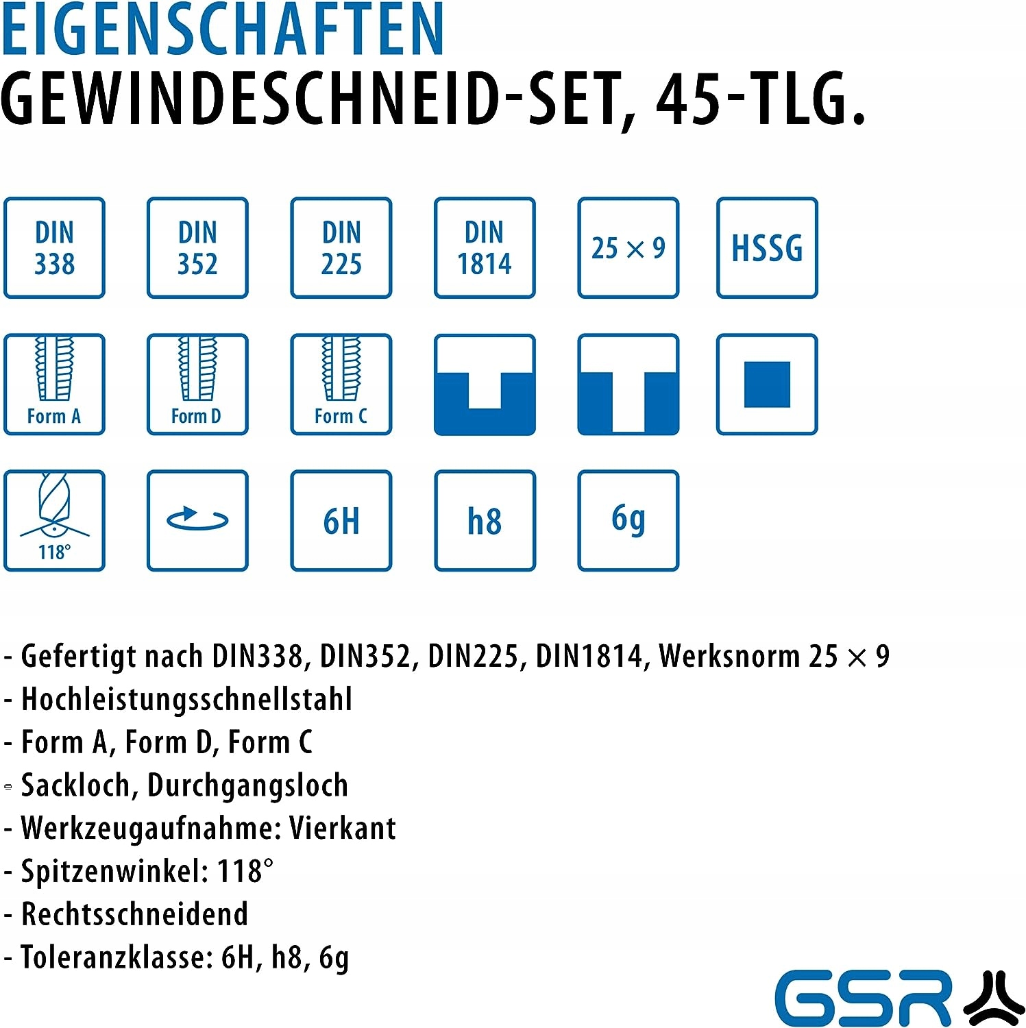 - Багатофункціональний набір свердел з нержавіючої сталі: набір із 45 різьб придатний для виготовлення внутрішньої та зовнішньої різьби відповідно до метричних стандартів ISO. Включаючи посібник користувача (може не бути