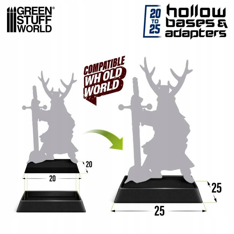 Крім того, їх можна використовувати як 25 мм основи, що дозволяє перетворити 20 мм до більшого розміру 25 мм. Ця функція особливо корисна, якщо ви використовуєте їх як адаптери, сумісні з стендами Вархаммера Старого Світу, де необхідність використання старих статуетків стає реальністю.