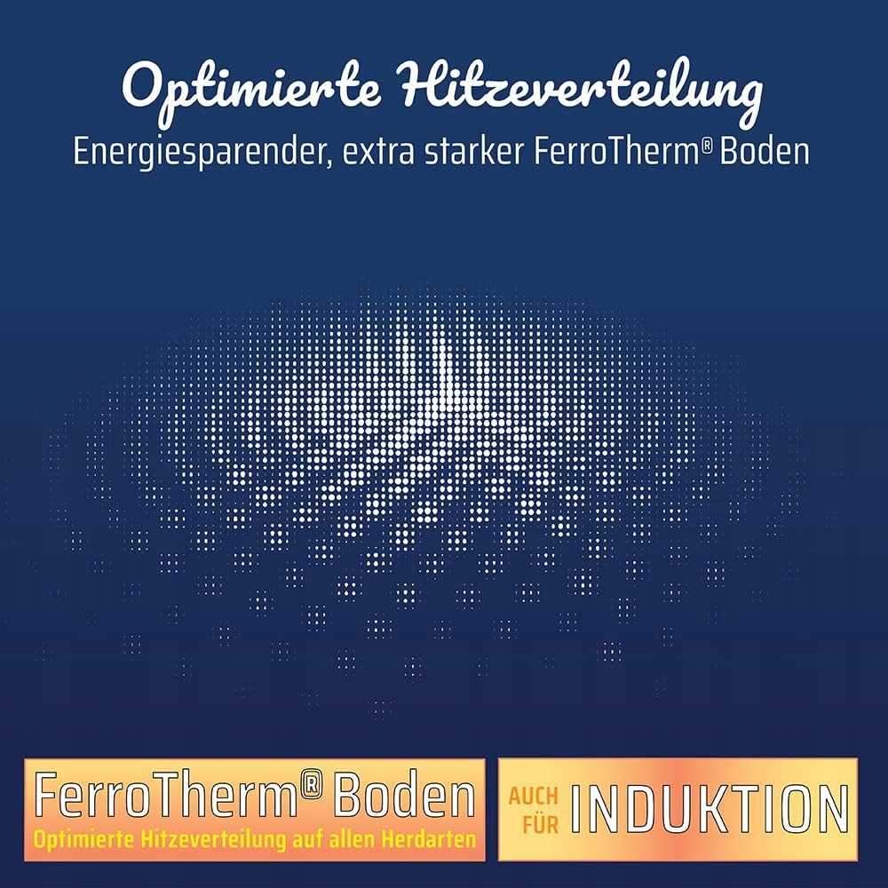 підходить для духовки до 240 ° Сптимального розподілу тепла на всіх типах плит - також індукція. Енергія -Захисання, дуже сильне дно феротерми. Високоякісна дротяна ручка з нержавіючої сталі - скляна кришка з ароматною кнопкою. Унікальне вдосконалення керамічного greblon - надзвичайно довговічного та стійкого до подряпин.