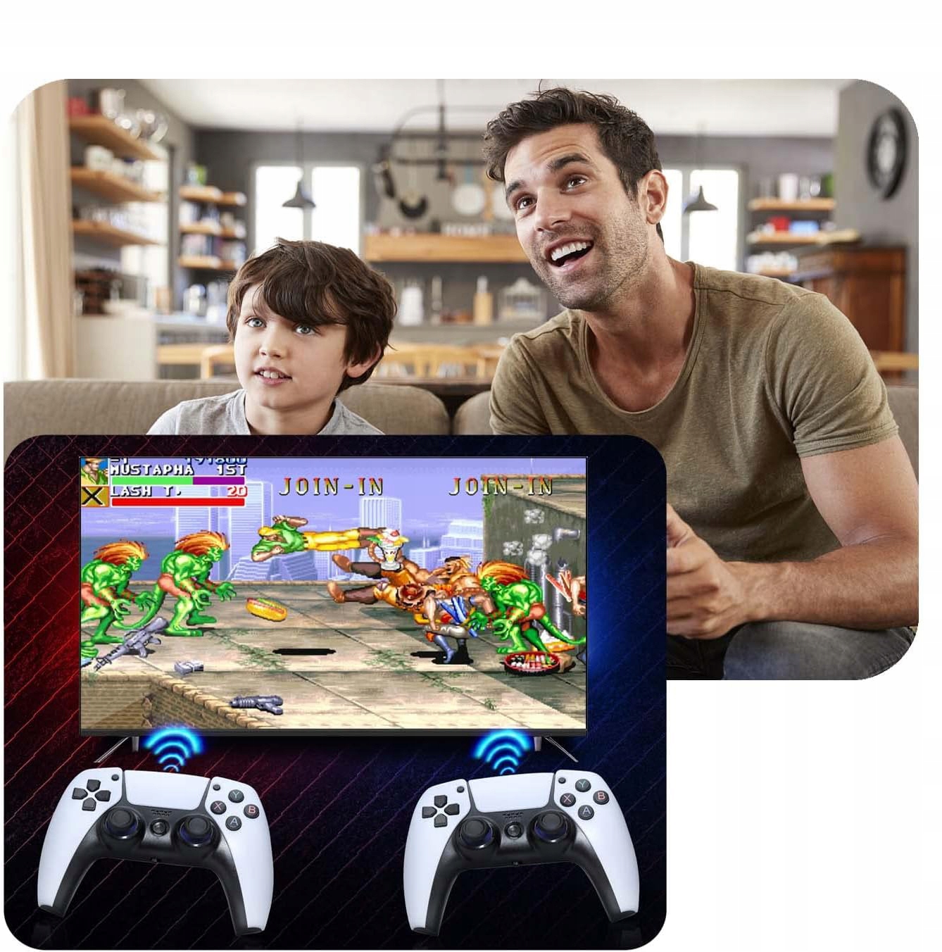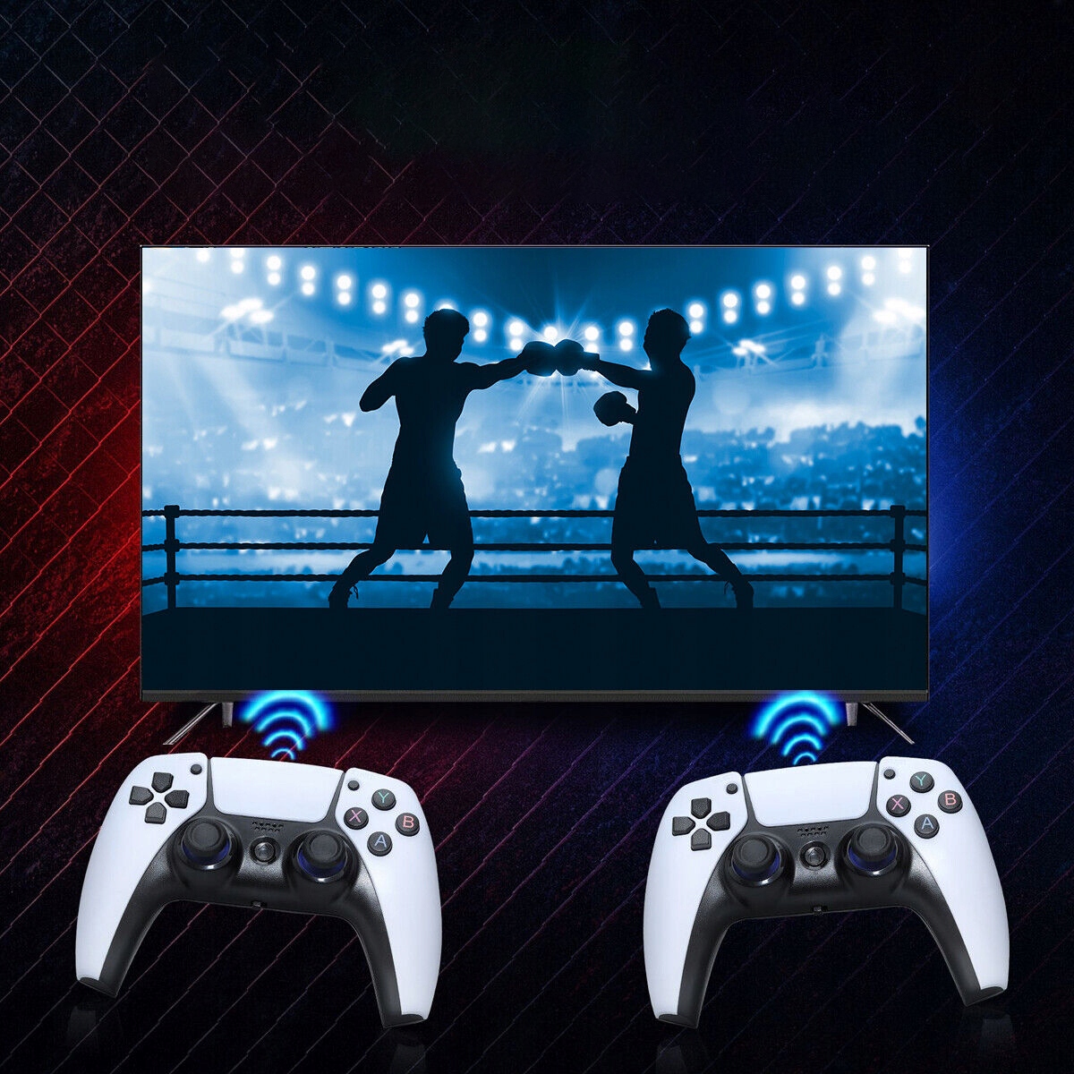 - Завдяки двом бездротовим ігровим контролерам 2.4G ви можете грати з двома людьми одночасно за допомогою «підключи та грай».