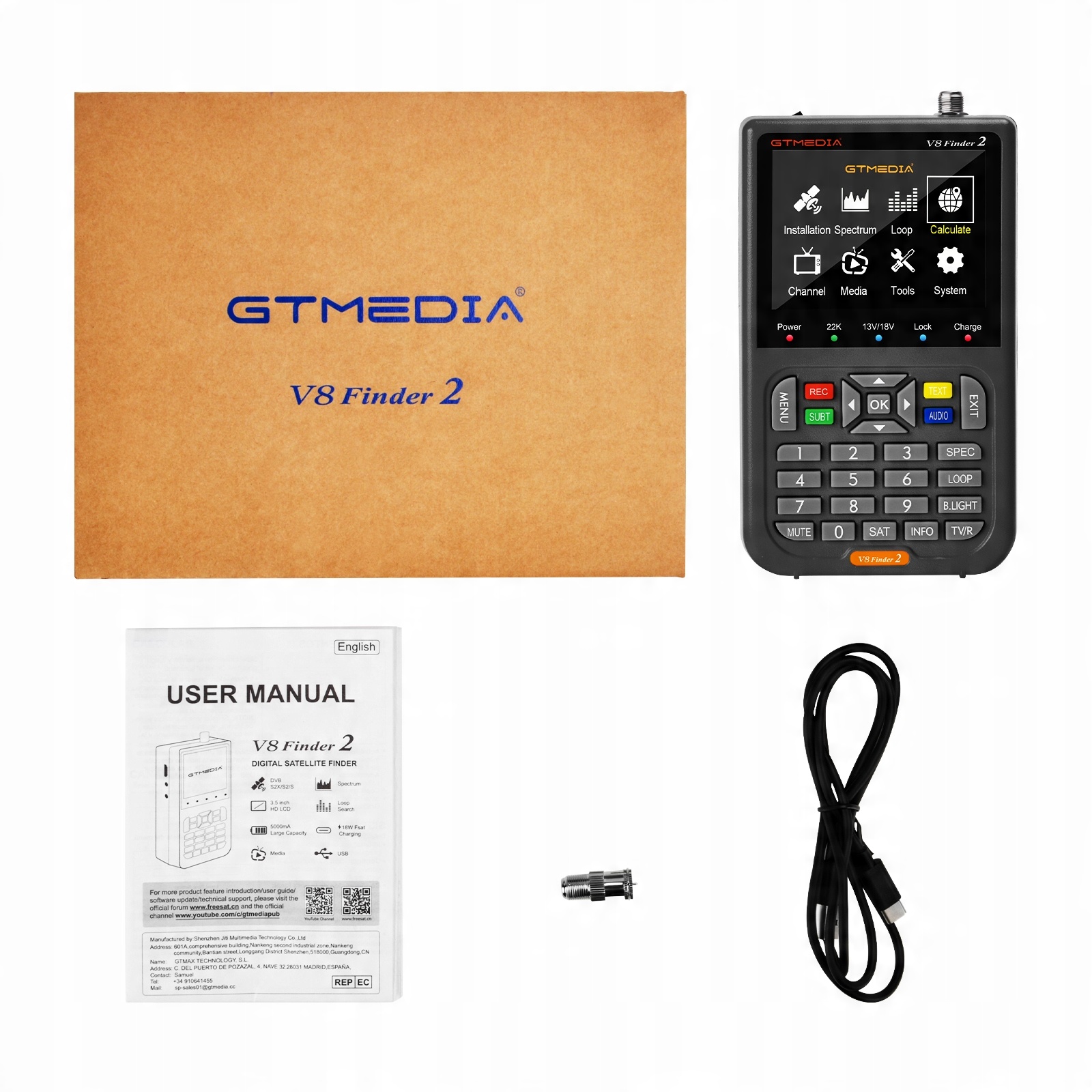 GTMEDIA V8 Finder 2 – це портативний вимірювач сигналу, сумісний зі стандартами DVB-S/S2/S2X і MPEG-2/4 H.264 (8 біт). Завдяки компактному розміру, малій вазі, інтуїтивно зрозумілому інтерфейсу користувача, довгому ресурсу батареї та багатому набору функцій, лічильник забезпечує всі функції, необхідні для встановлення та перевірки послуг цифрового телебачення в житлових будинках або багатоквартирних будинках.