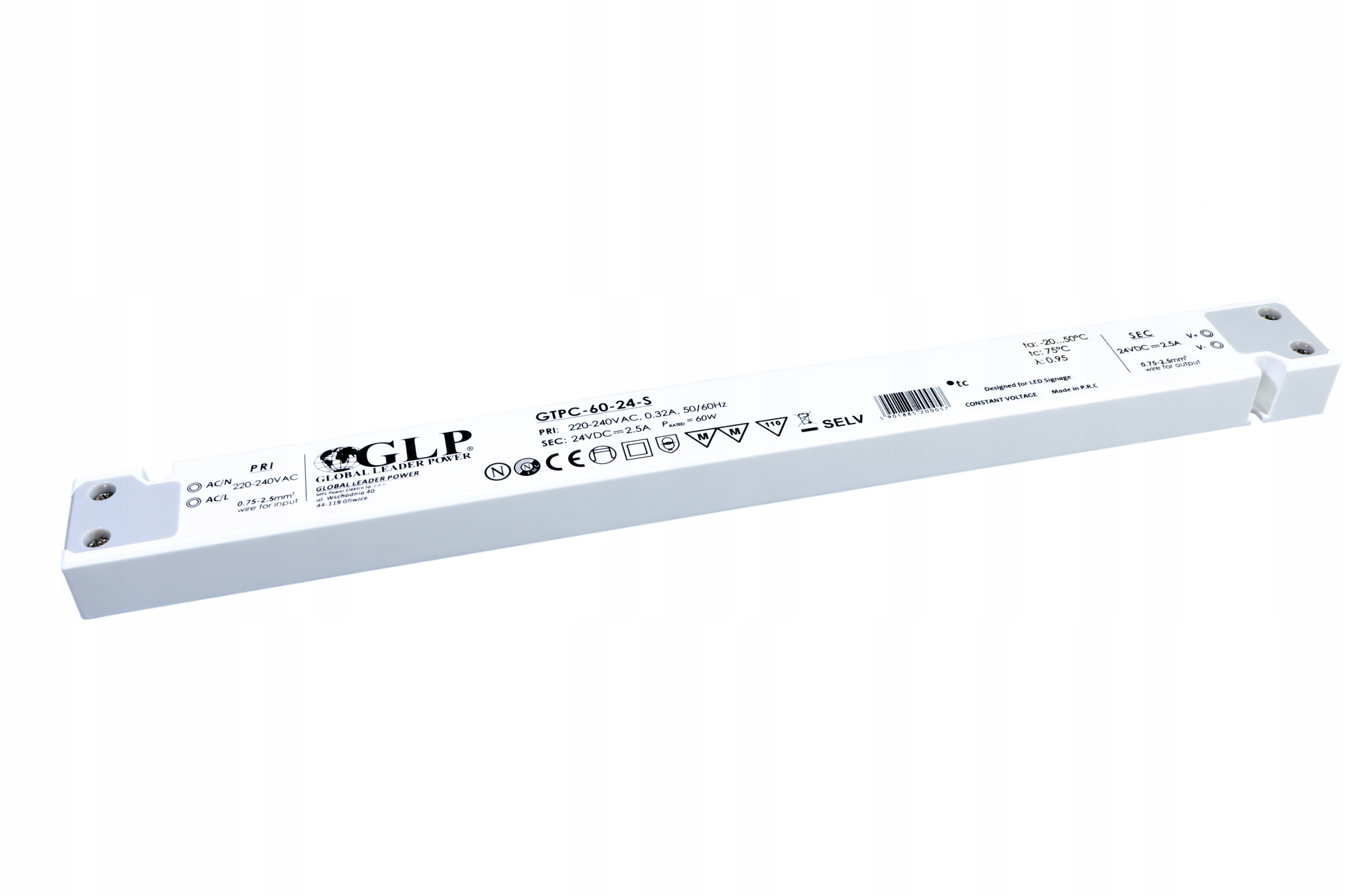 GTPC-60-24-S: GLP PSU: 24V/2.5A, CV, пластиковий корпус, тонкий