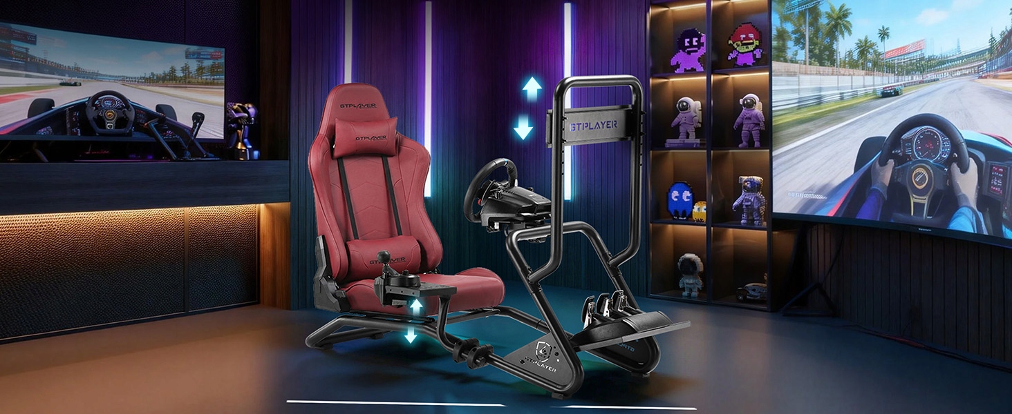 GTPLAYER Simulator Cockpit — це комплексний симулятор перегонів, створений для захоплюючого ігрового процесу та зручності користувача. Він має регульовану підставку під кермо, кріплення для перемикання передач і педалі, а також вбудовану підставку для монітора, сумісну з екранами 32-60 дюймів. Його видатною особливістю є 3D-стереодинаміки, встановлені на підголівнику, що забезпечує об’ємне звукове поле на 360° для покращеної реалістичності. Кабіна підкреслює гнучкість завдяки регулюванню висоти, нахилу, глибини сидіння та положення педалей. Він забезпечує широку сумісність із більшістю гоночних периферійних пристроїв основних брендів і відомий простотою збірки, яку можна виконати приблизно за 30 хвилин.