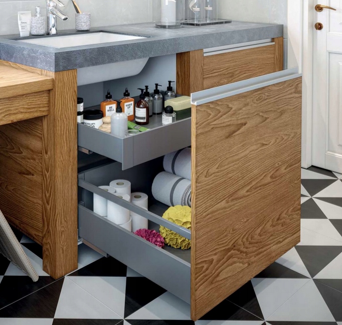 Прості, чіткі контури та гладка поверхня сторін чудово впишуться в будь-яку модель меблів. Завдяки ультратонким бічним покриттям користувач отримує додатковий простір усередині ящика. Серцем системи є надійна направляюча, точність безшумного механізму закривання, повне висування та висока вантажопідйомність забезпечують найвищий комфорт використання меблів.