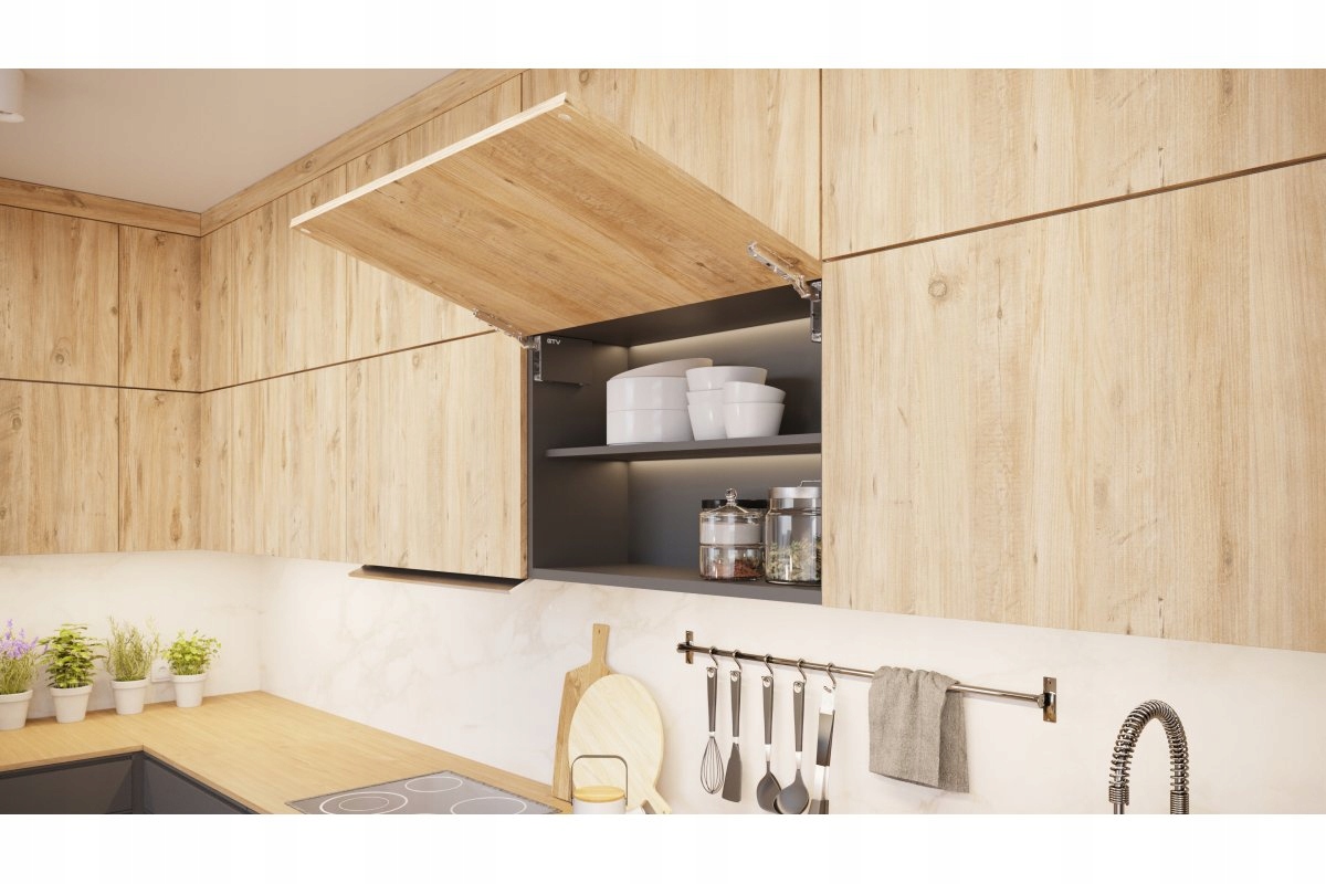 ✅ Механічний підйомник дає змогу створювати функціональні та сучасні верхні шафи, що підвищує їх привабливість і корисність.