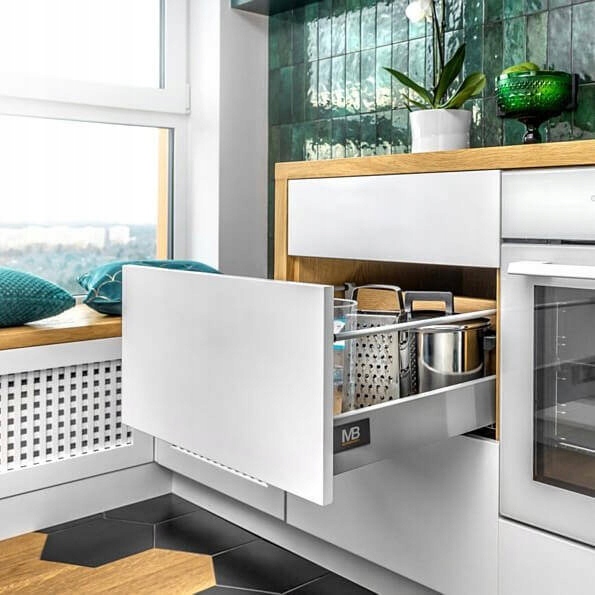 "Сучасна площа коробки - це точність продуктивності, комфорт використання та в той же час оригінальний, модний дизайн. Все це пропонується нашим клієнтам за надзвичайно доступною ціною. Сучасна коробка Square оснащена новими путівниками з тихим закриттям та повним слайдом, гарантуючи комфортне та тихе використання протягом багатьох років. Система додаткові аксесуари - перила, перегородки, сторони - доступні в довжинах від 350 до 550 мм, в кольорі антрациту. Додатковою перевагою квадратної МБ є армована структура посібників, ємність навантаження (до 40 кг) забезпечує зручну та безпроблемну роботу ящика з високим навантаженням.