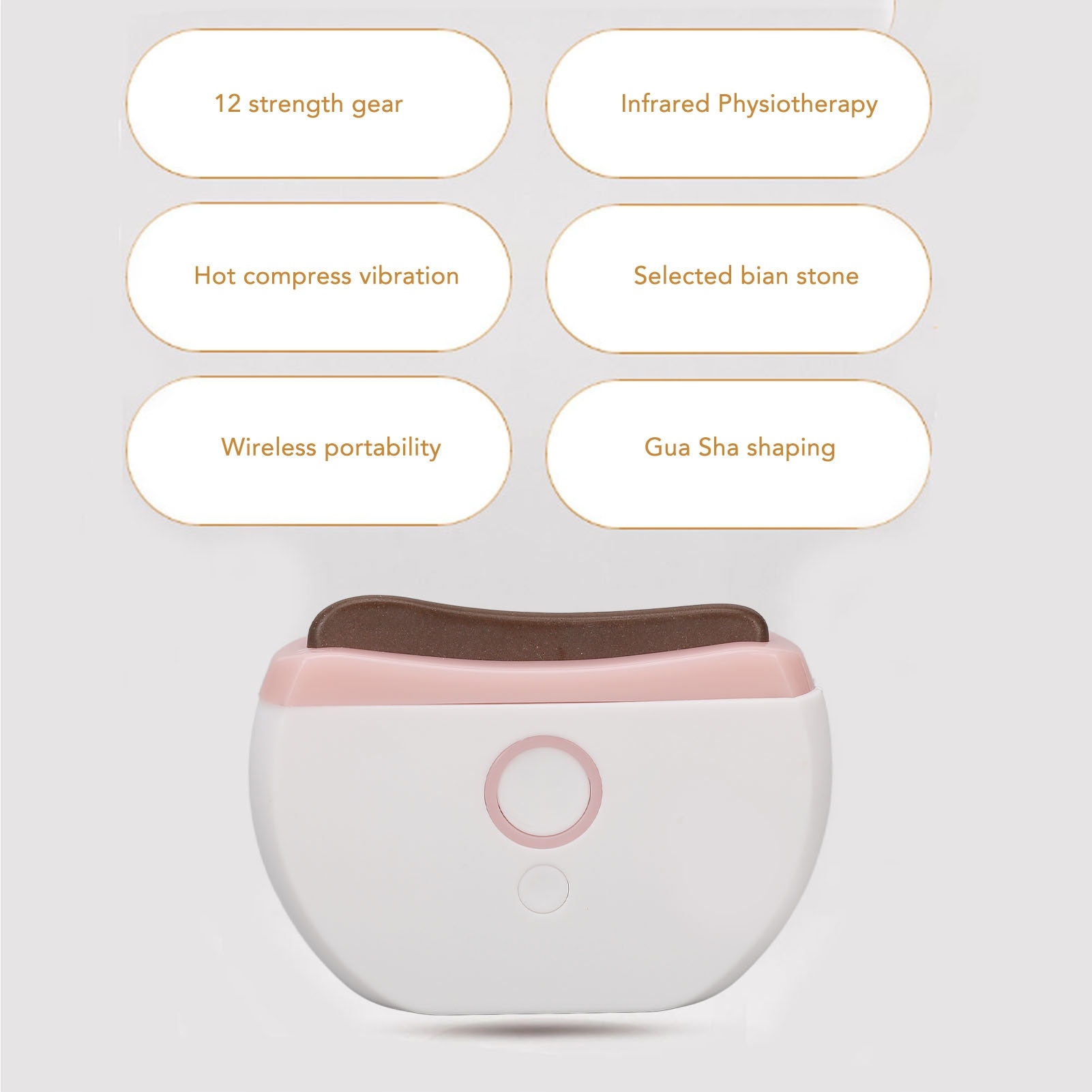 Функція: 1. Bian Stone: Використовуючи кам'яні елементи, масажер Гуа Ша може безпосередньо впливати на Цио при подряпині шкіри, вивільняючи багаті мікроелементи та віддалені інфрачервоні хвилі, які допомагають регулювати функції організму.
