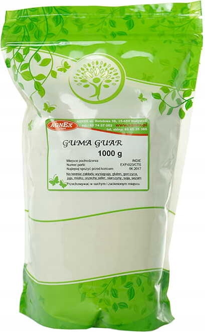 Гуарова камедь - це натуральна речовина, яка зв'язує воду, підвищує в'язкість і має стабілізуючі властивості. Це порошок з хорошою розчинністю у воді, який створює лікарський розчин. Його отримують з ендосперму зерен рослини Cyamopsis tetragonoloba, яка походить із сімейства бобових. Росте в Індії та Пакистані.