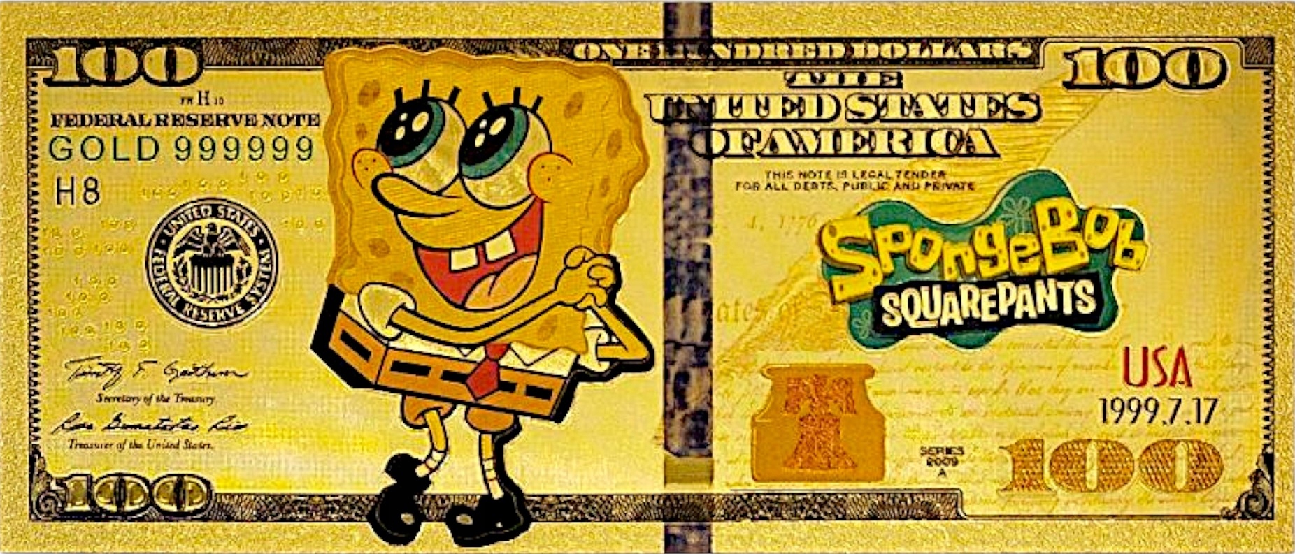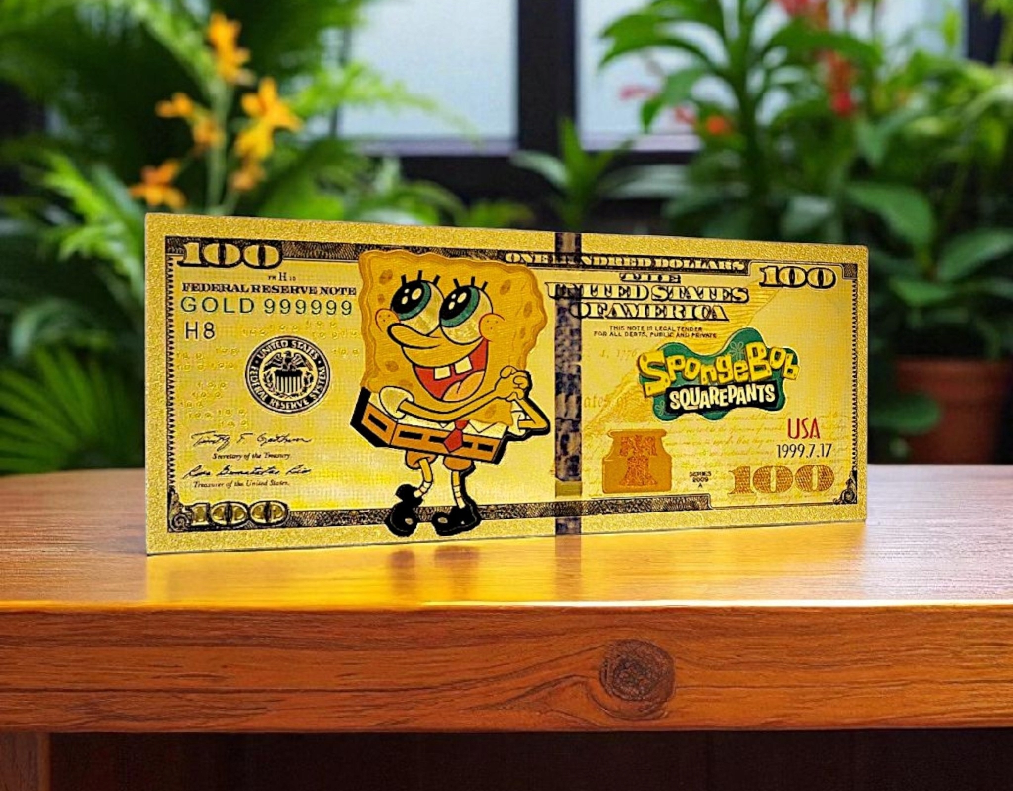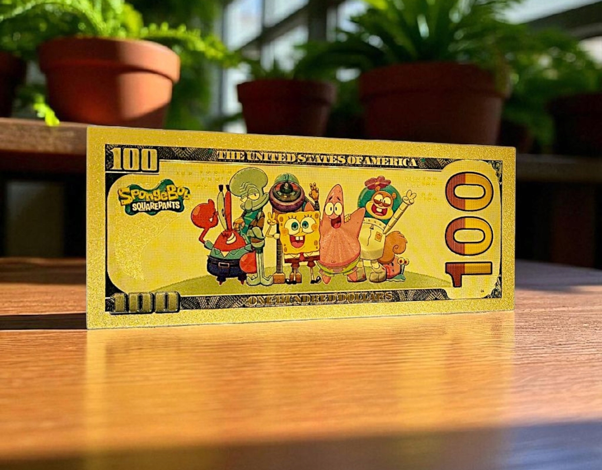 Додайте нотку гумору та ностальгії у свою колекцію за допомогою позолоченої колекційної банкноти із зображенням персонажів культового мультфільму Nickelodeon — Губки Боба Квадратні Штани.