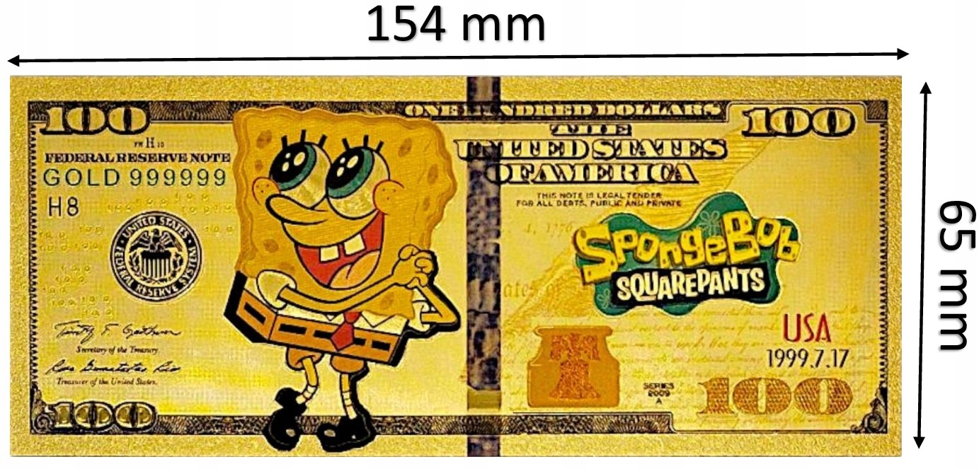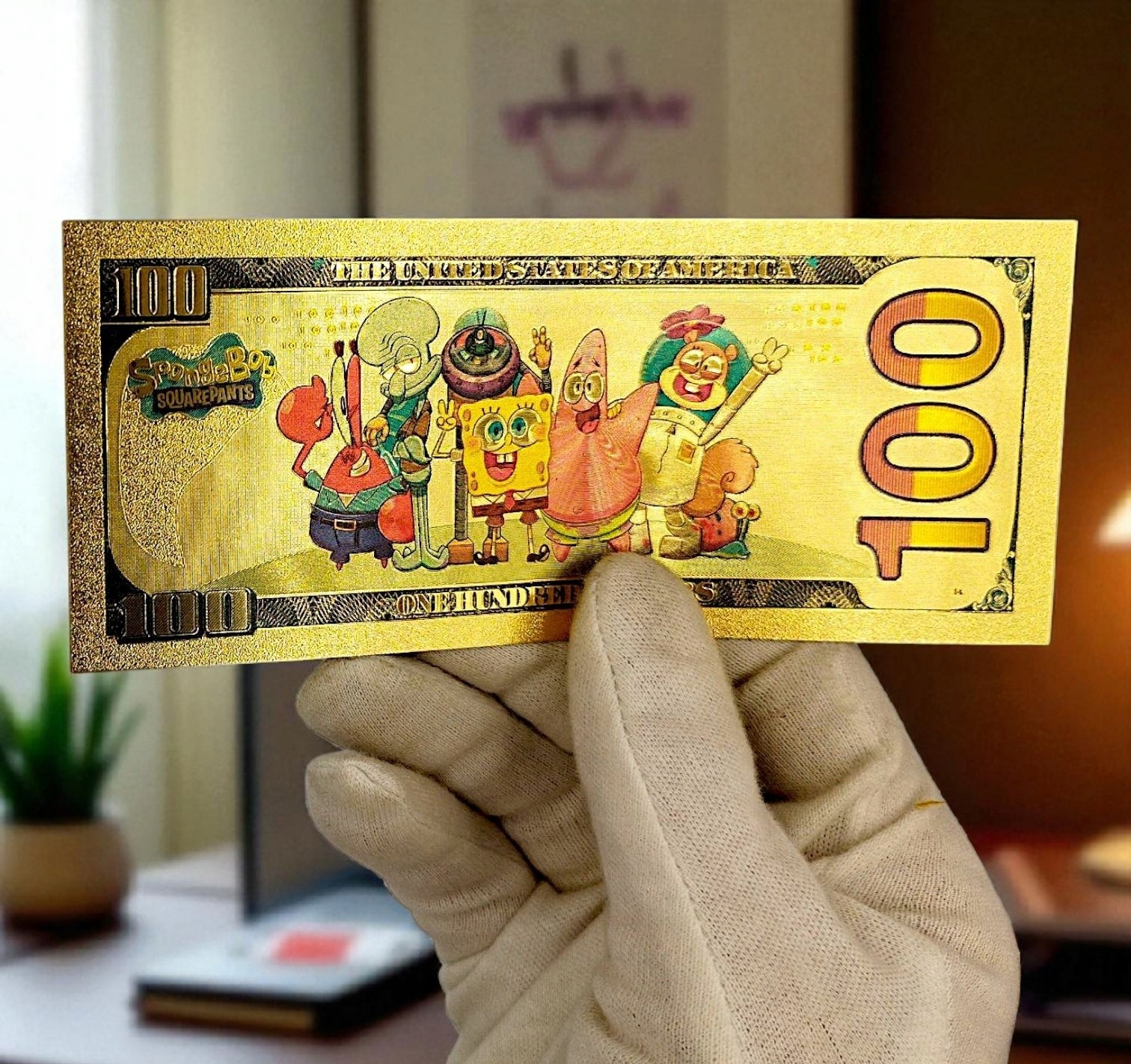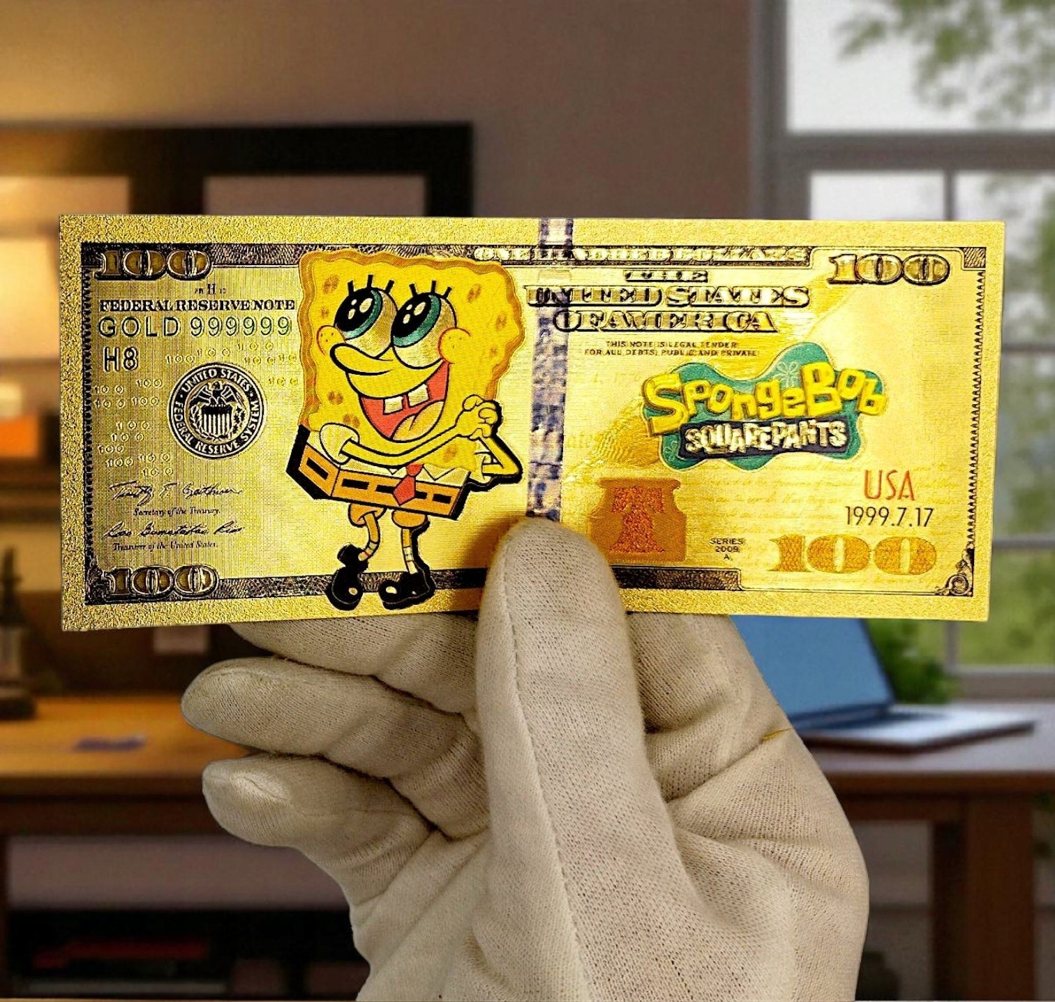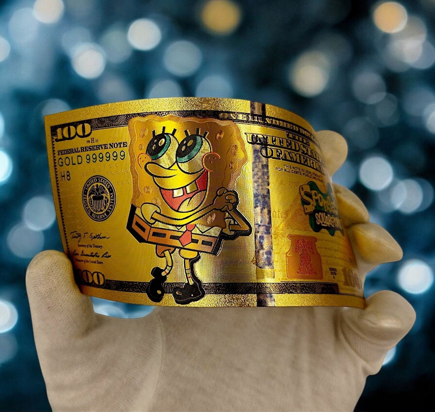 ГУБКА БОБ Колекційна позолочена купюра з ПВХ. Унікальний гаджет для фаната