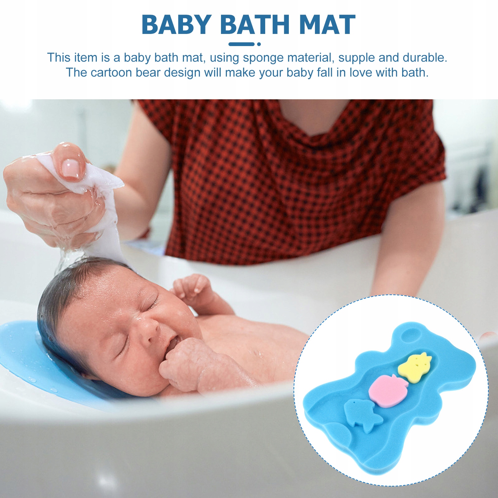 ✅Подушка для купання зроблена зі зручної, товстої, швидковисихаючої губки, достатньо міцної, щоб служити протягом тривалого часу, і достатньо ніжної, щоб дбайливо ставитися до ніжної шкіри дитини!