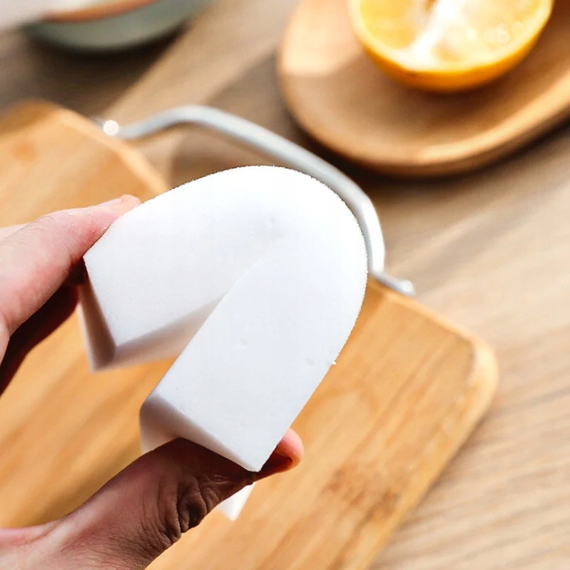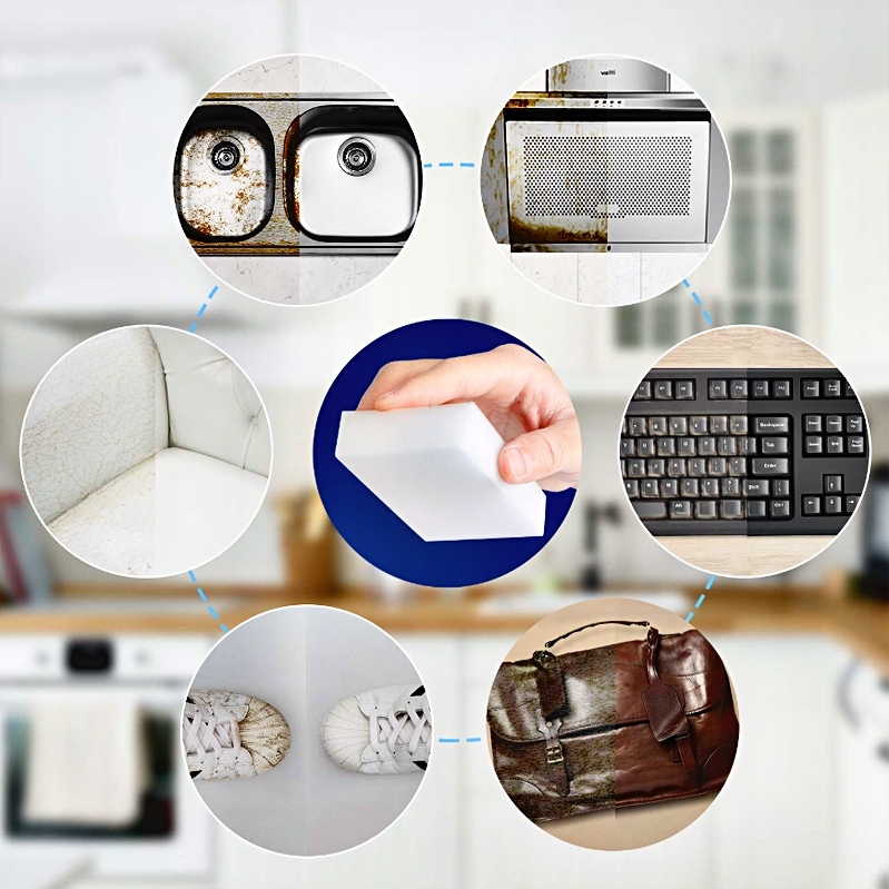 Чарівна губка працює як ластик для бруду. Для ефективного видалення бруду вам не потрібні хімікати. Губка підходить для поверхонь, стійких до вологи та стирання, адже для ефективної роботи чарівної губки її потрібно злегка змочити, а забруднення стерти, як олівець гумкою.