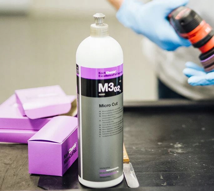 Koch Chemie Micro Cut PAD високоякісна спеціальна губка для остаточного видалення незначні подряпини, голограми та сліди полірування за допомогою Micro Cut M3.02 і Micro Cut & Finish P3.01. Висота лише 23 мм забезпечує менші сили деформації, дуже зручну роботу та найвищу стабільність. Виняткова щільність матеріалу, з якого виготовлена губка, гарантує, що вона залишається твердою навіть під час полірування. Завдяки своїй сітчастій (пінопластовій) структурі та відповідній пористості залишає тривалий глянцевий блиск, зберігаючи високий ступінь чистоти. Фрезеровані краї збільшують гнучкість полірувальної подушечки, що дозволяє їй краще адаптуватися до форми полірованого предмета. Колір матеріалу, який відповідає поліролю, підвищує безпеку процесів.