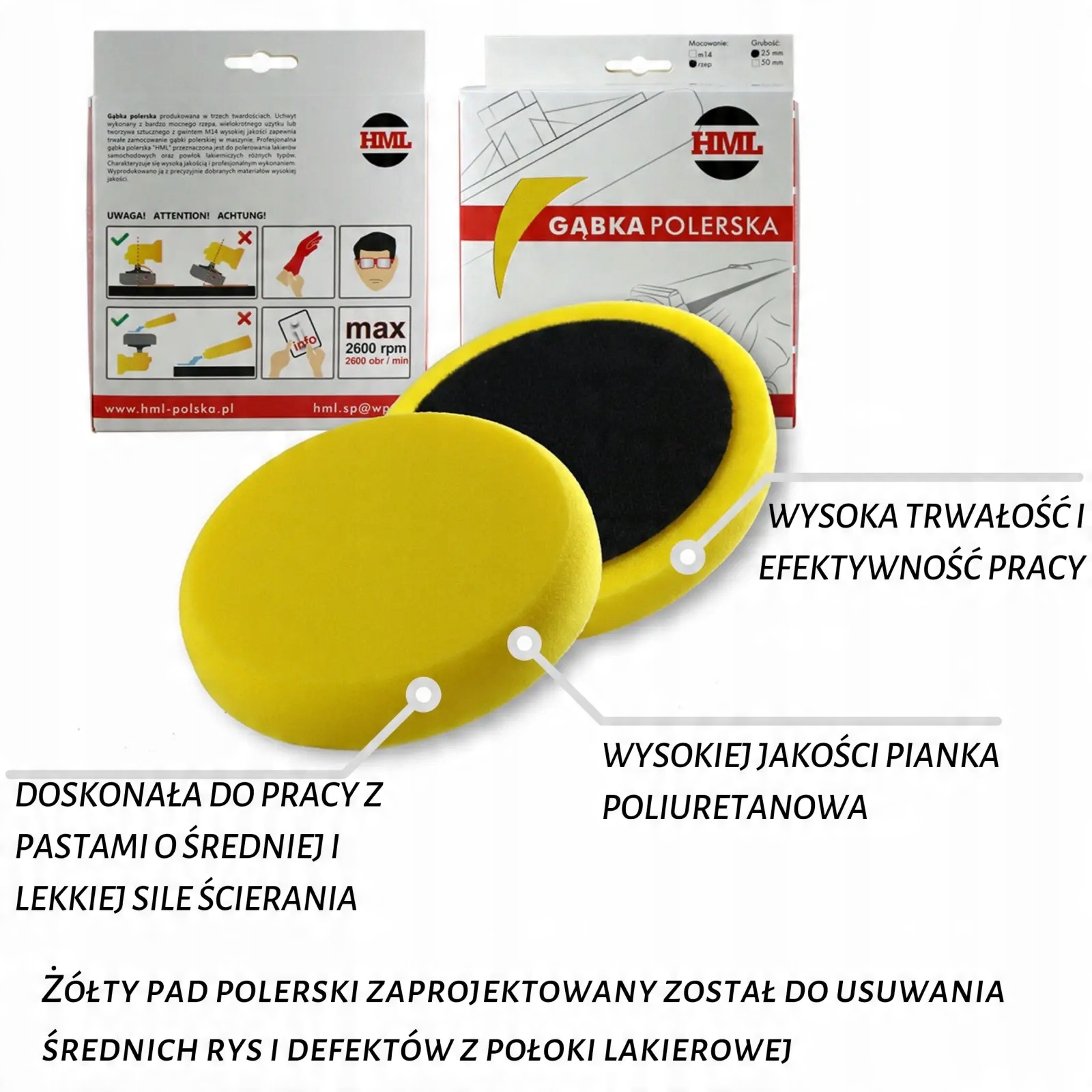 Полірувальні губки HML призначені для роботи з полірувальними пастами Menzerna - їх кольори та ступінь жорсткості відповідають оригіналам німецького виробника. Жовта полірувальна подушечка середньої жорсткості, призначена для використання з фінішними полірувальними пастами Menzerna PF 2500 / PP Ultra / 3в1. Ідеально підходить для видалення дрібних подряпин, дефектів і голограм з лакофарбового покриття. Це дозволяє досягти приголомшливих результатів за дуже короткий час. Губка призначена для роботи з роторними та орбітальними машинами в діапазоні частот обертання 300-2500об/хв. Губка має діаметр 150 мм і кріпиться за допомогою липучки.