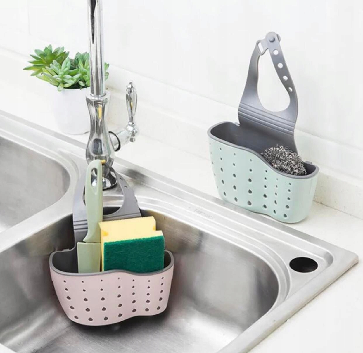 На щастя, є просте вирішення цієї проблеми - органайзер для кухонних губок, який можна повісити на кран або будь-де!