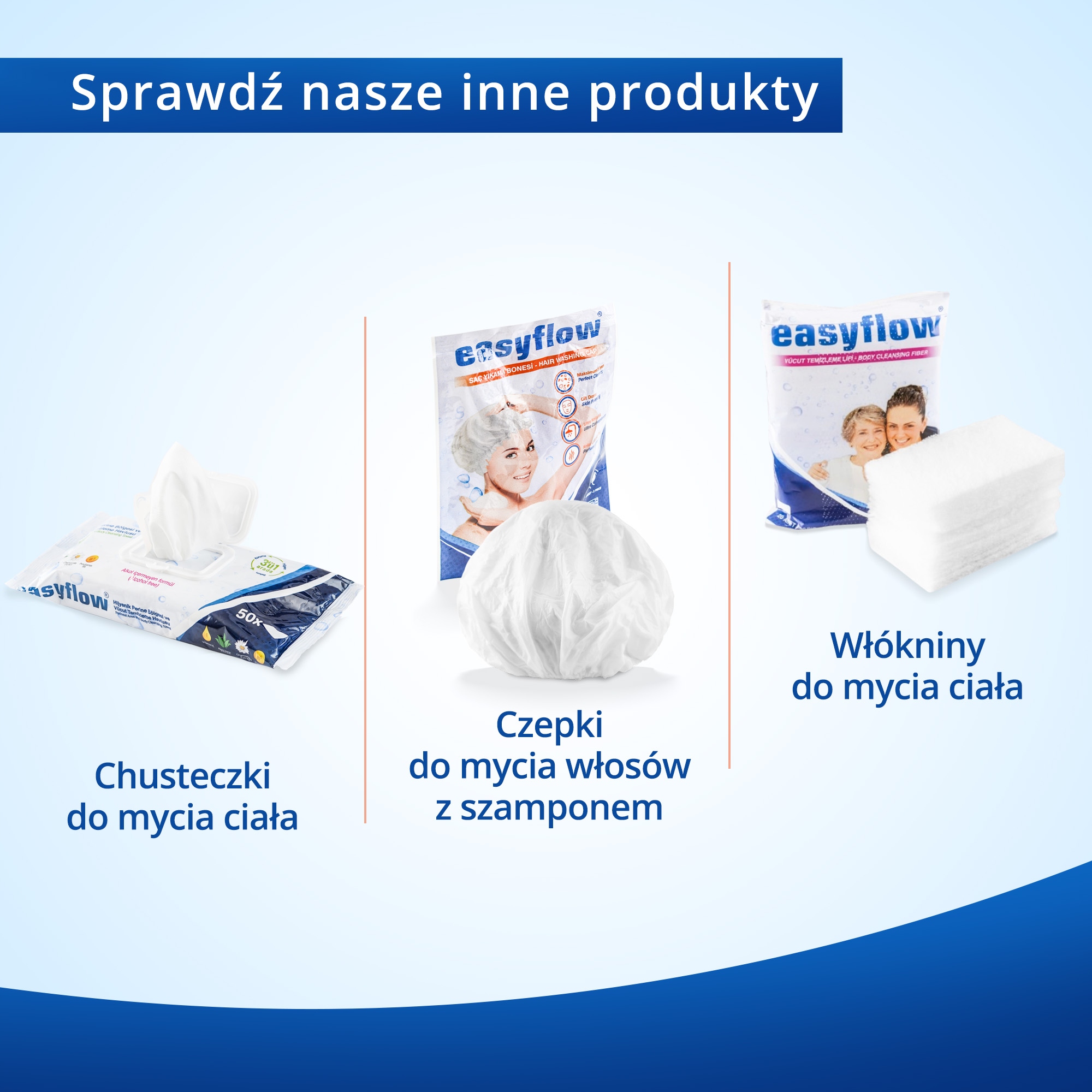 Відкрийте повний діапазон продуктів Easyflow , створених для зручного та ефективного догляду без використання води. Відкрийте наші миття серветки для миття тіла, шапки для миття волосся та миття шайби для миття тіла - ідеальне рішення в догляді за ліжками, що перебувають у ліжках, в подорожах або в ситуаціях з обмеженим доступом до ванної кімнати.