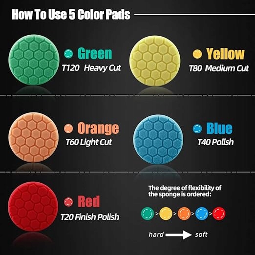 ✔ П'ять різних кольорів губки доступні, ефективне різання та полірування найскладніших місць.