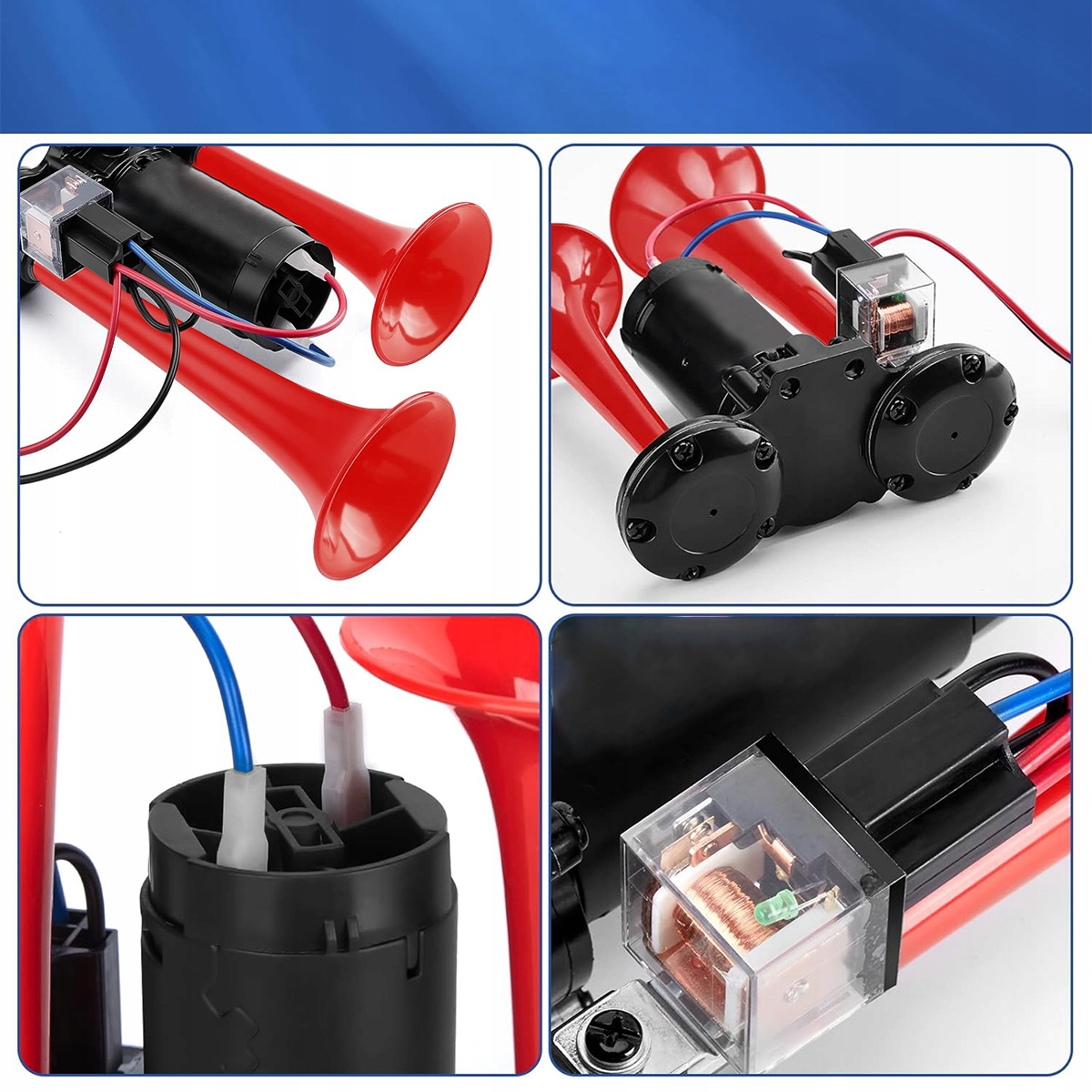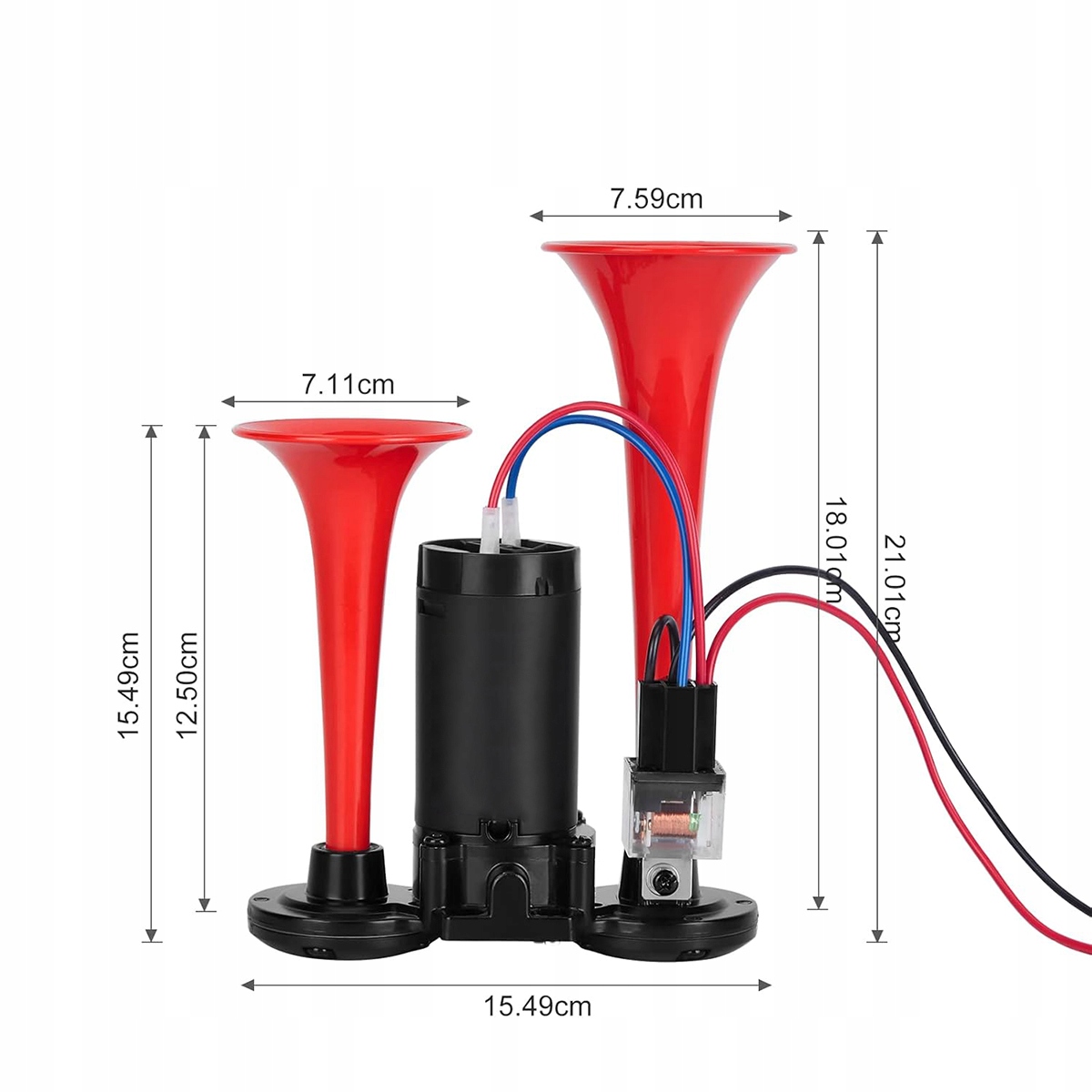 12 В автомобілів роги 600 дБ, супер гучний двомісний ріг з компресором, пневматичним рогом, стисненим повітрям, встановленим для всіх транспортних засобів, автомобілів, автомобілів, вантажівки, поїздів, човнів, автомобілів, фургонів, фургонів (червоний) 1>