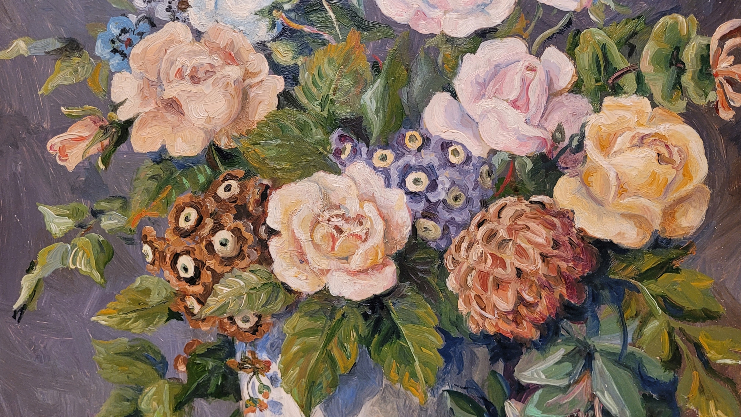 Предметом продажу є гарна старовинна картина маслом "КВІТИ У ВАЗІ".