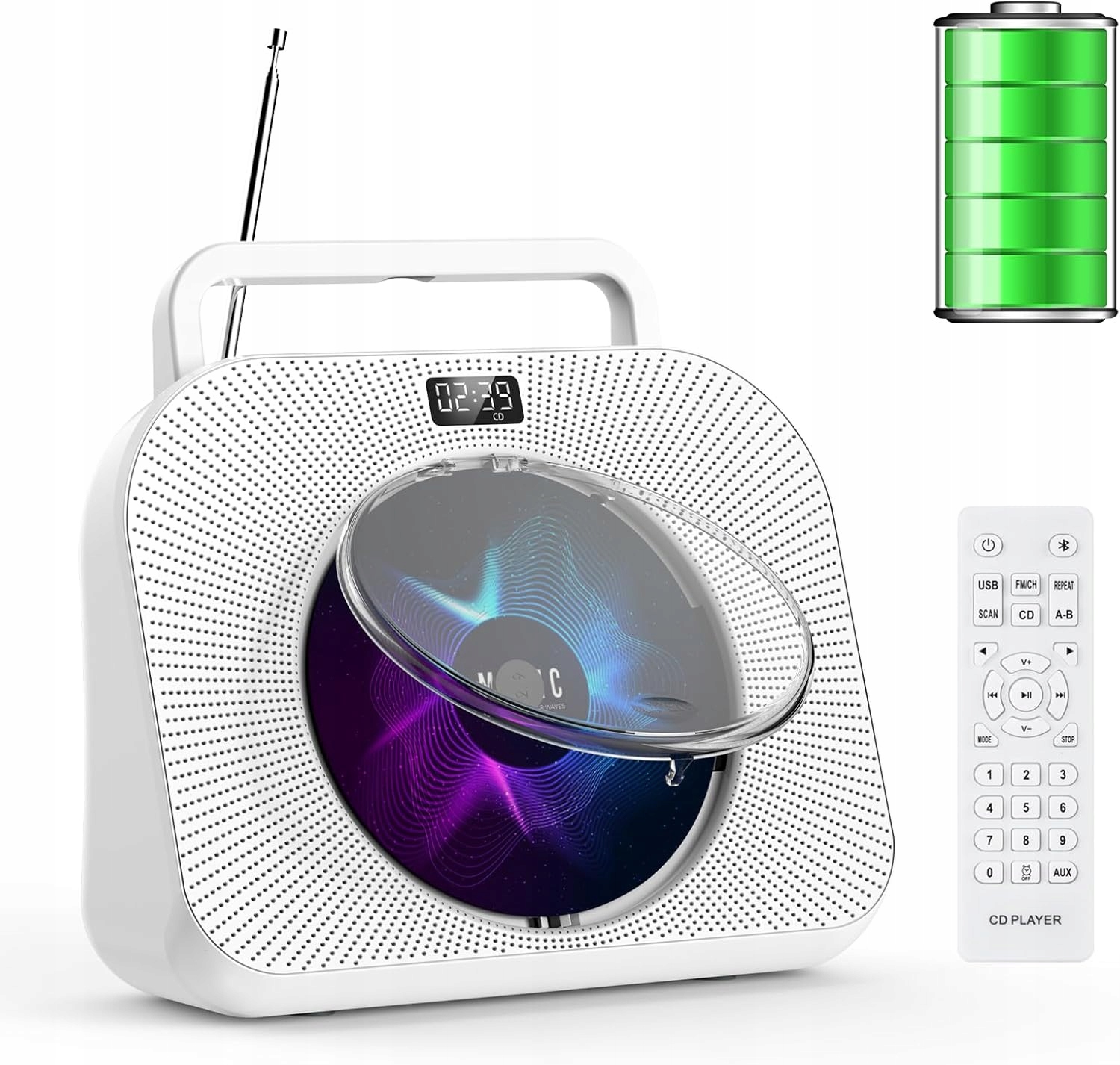 Gueray Przenośny odtwarzacz CD z Bluetooth, montaż na ścianie R889