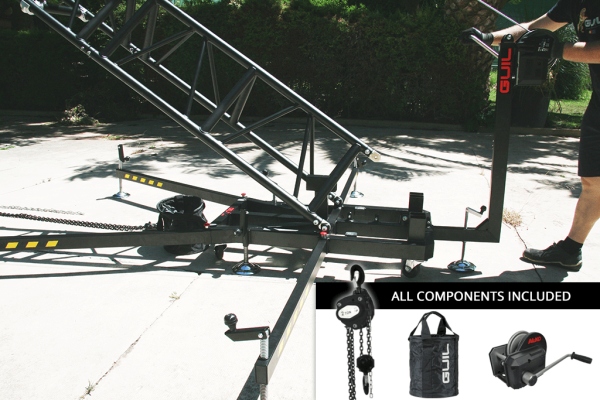 Після того як вежу зібрано за допомогою лебідки з гальмом і без додаткових зусиль, вежу можна підняти на місце.