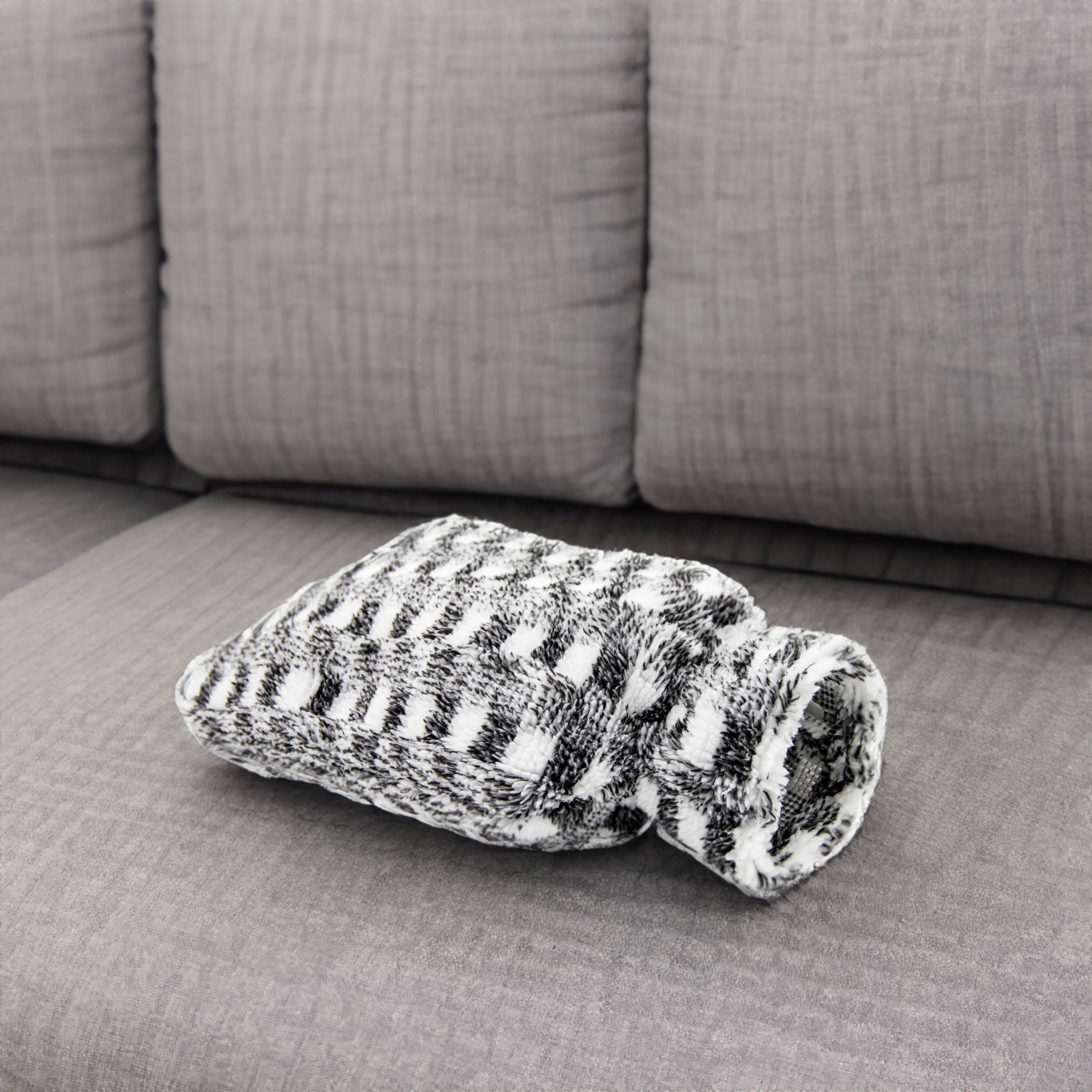 - чорно-біла пляшка з гарячою водою, плюшеве хутро у формі квадрата. ul>