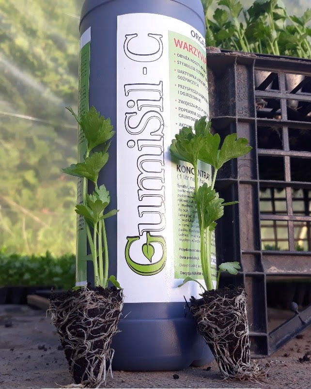 органіко-мінеральний стимулятор росту для всіх видів овочів, отриманих шляхом мікробіологічної обробки торфу низинного, препарат складається тільки з природної та екологічної сировини. До складу входять гумінові/фульвокислоти, мікро- та макроелементи, природні вітаміни, фітогормони, L-амінокислоти і, перш за все, корисні гриби роду Trichoderma, які населяють кореневу зону і безпосередньо впливають на розвиток кореня. системи та захистити рослину від патогенних факторів. Стимулятор GumiSil-C можна використовувати як для позакореневого, так і для ґрунтового внесення. Препарат має дозвіл на використання в органічному землеробстві №. SE/15/2018.