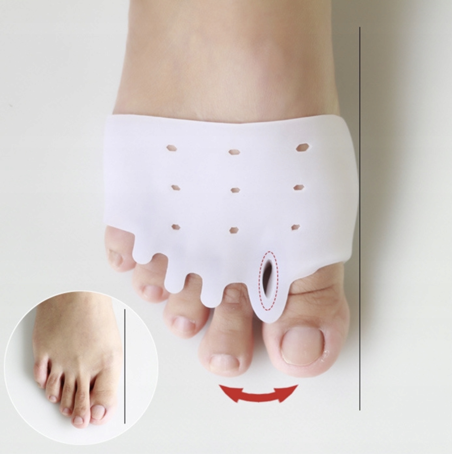 ✅ Корекція положення великого пальця стопи: обережно згинаючи великий палець назовні.