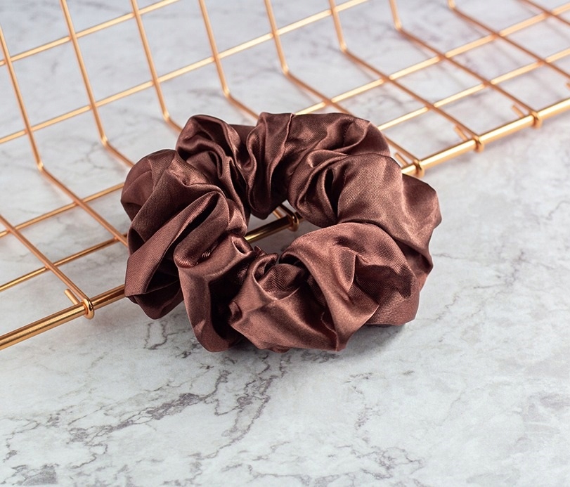 ГУМКА ДЛЯ ВОЛОСЬ САТИНОВА ШОКОЛАДНО-КОРИЧНА